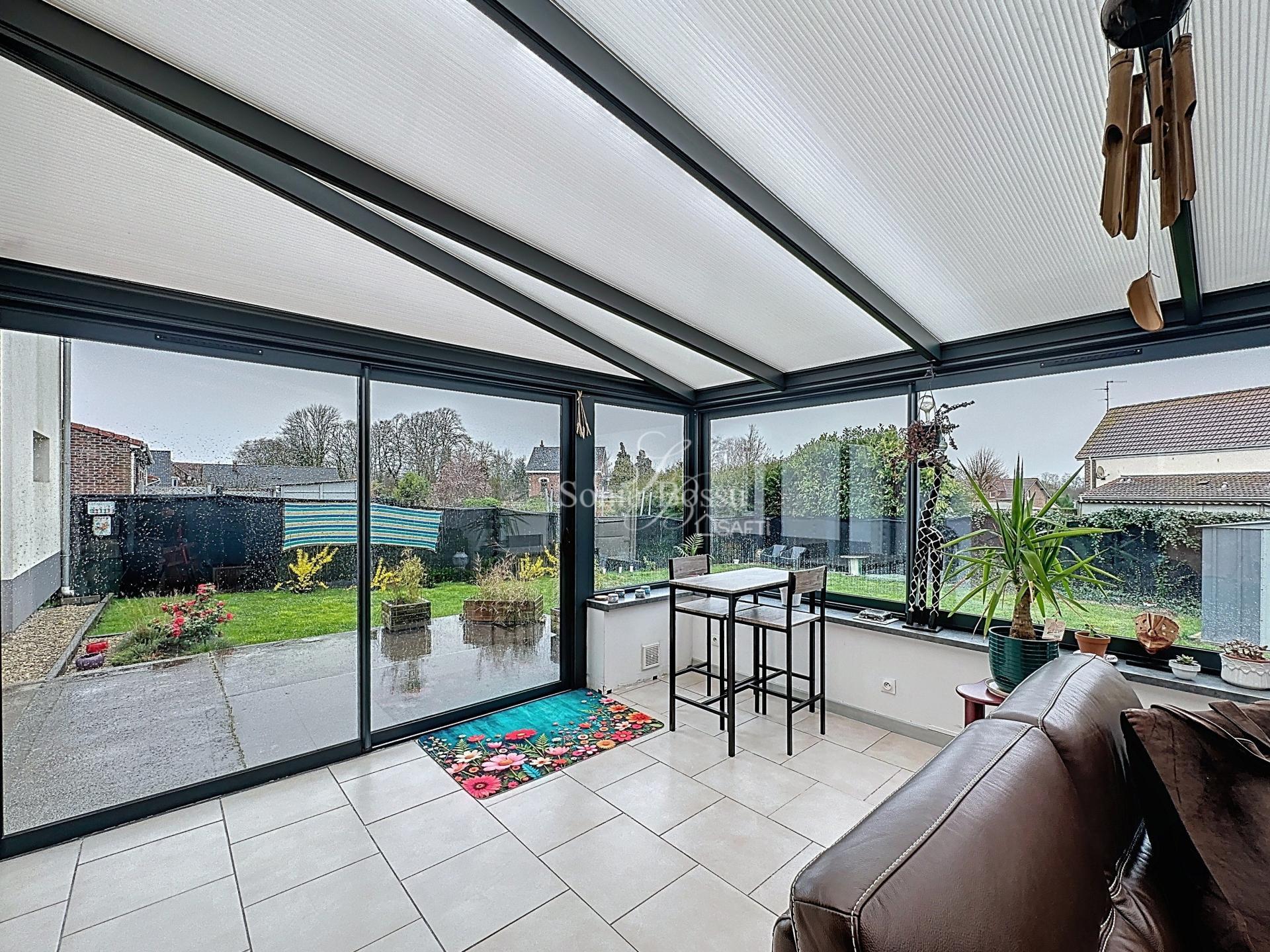 MAISON SEMI MITOYENNE EN SEMI PLAIN PIED 3 CHAMBRES VERANDA JARDIN GARAGE