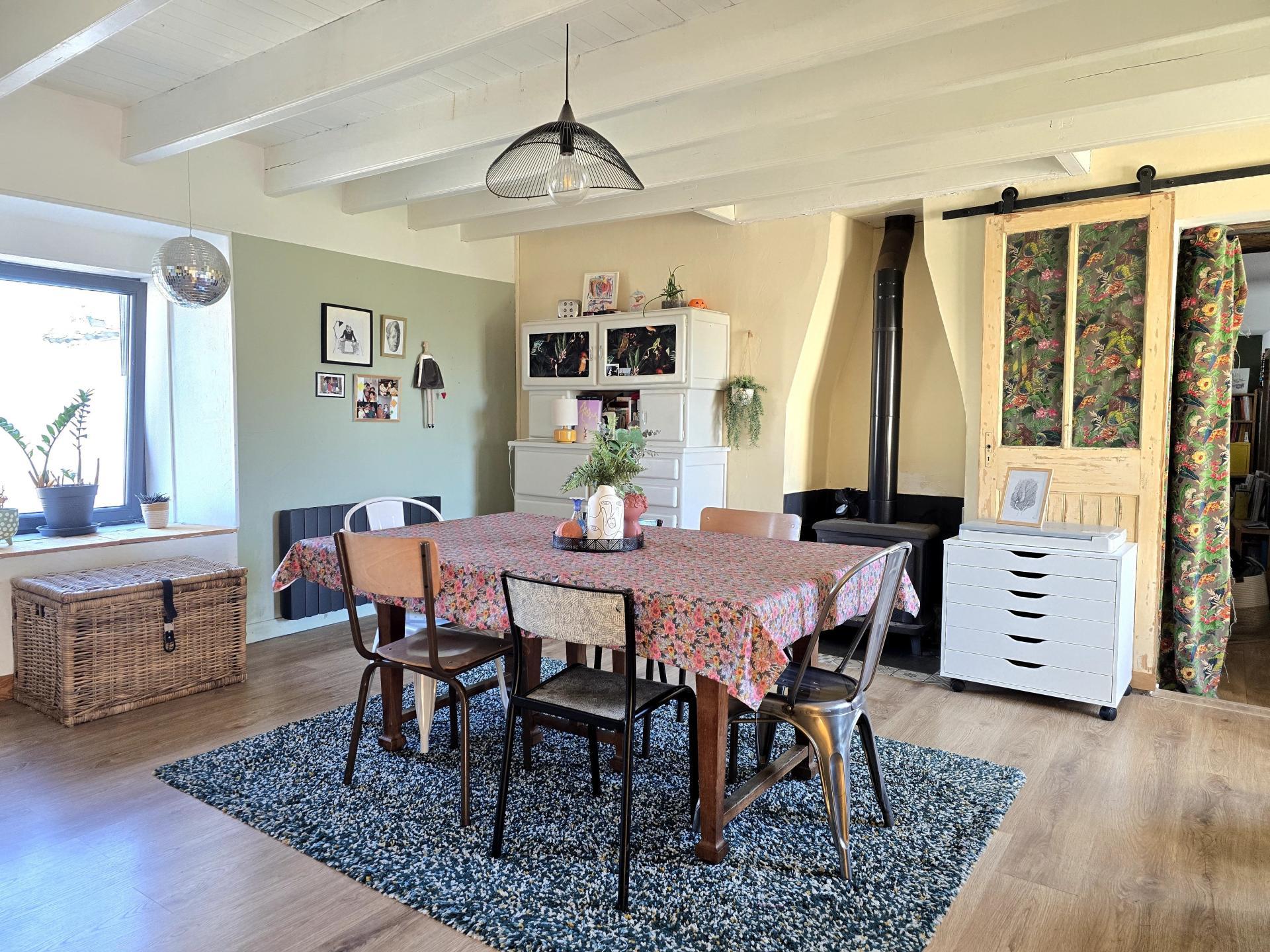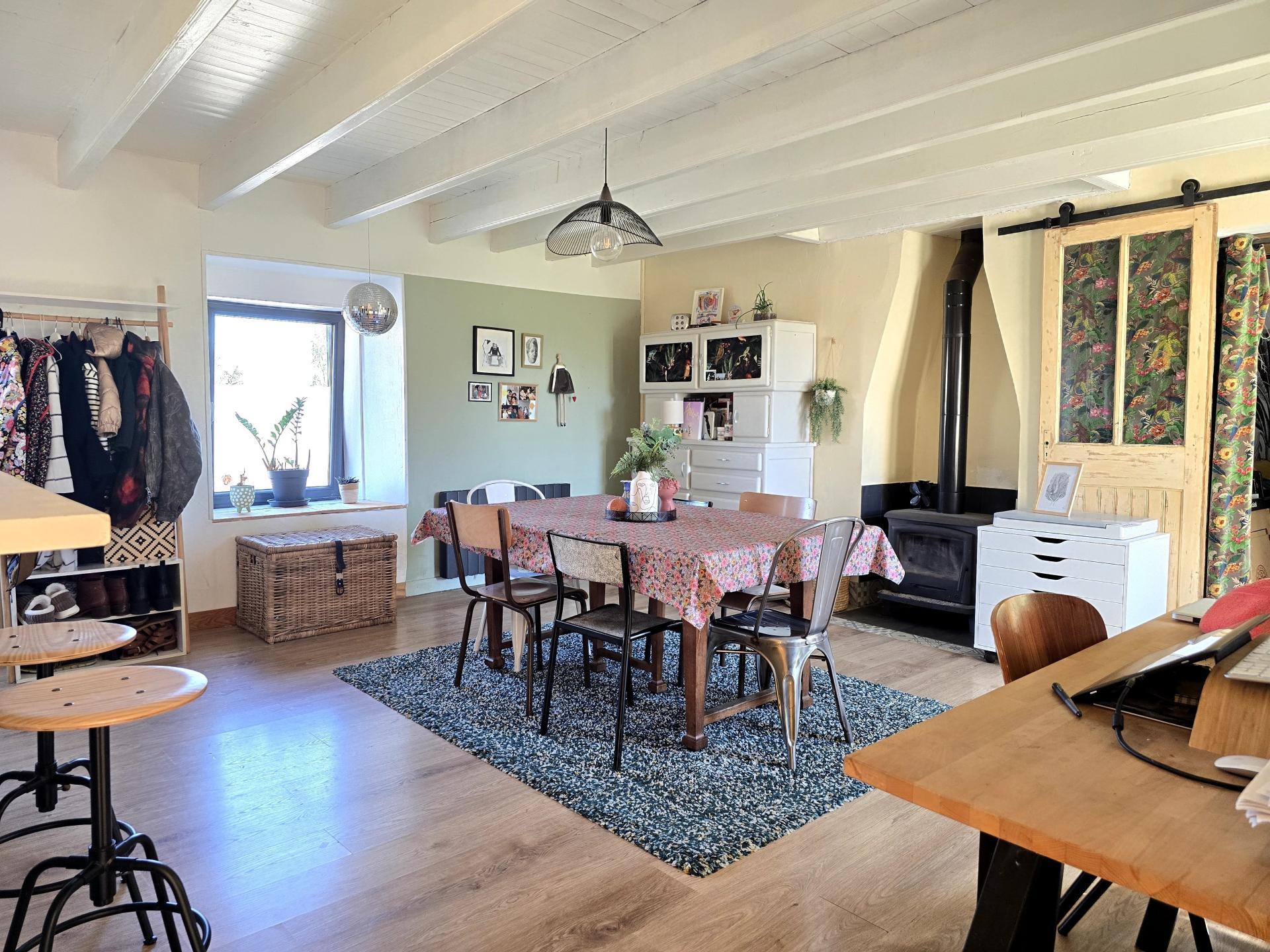 • Un séjour chaleureux, orienté Sud est équipé d’un poêle à bois avec récupérateur de chaleur