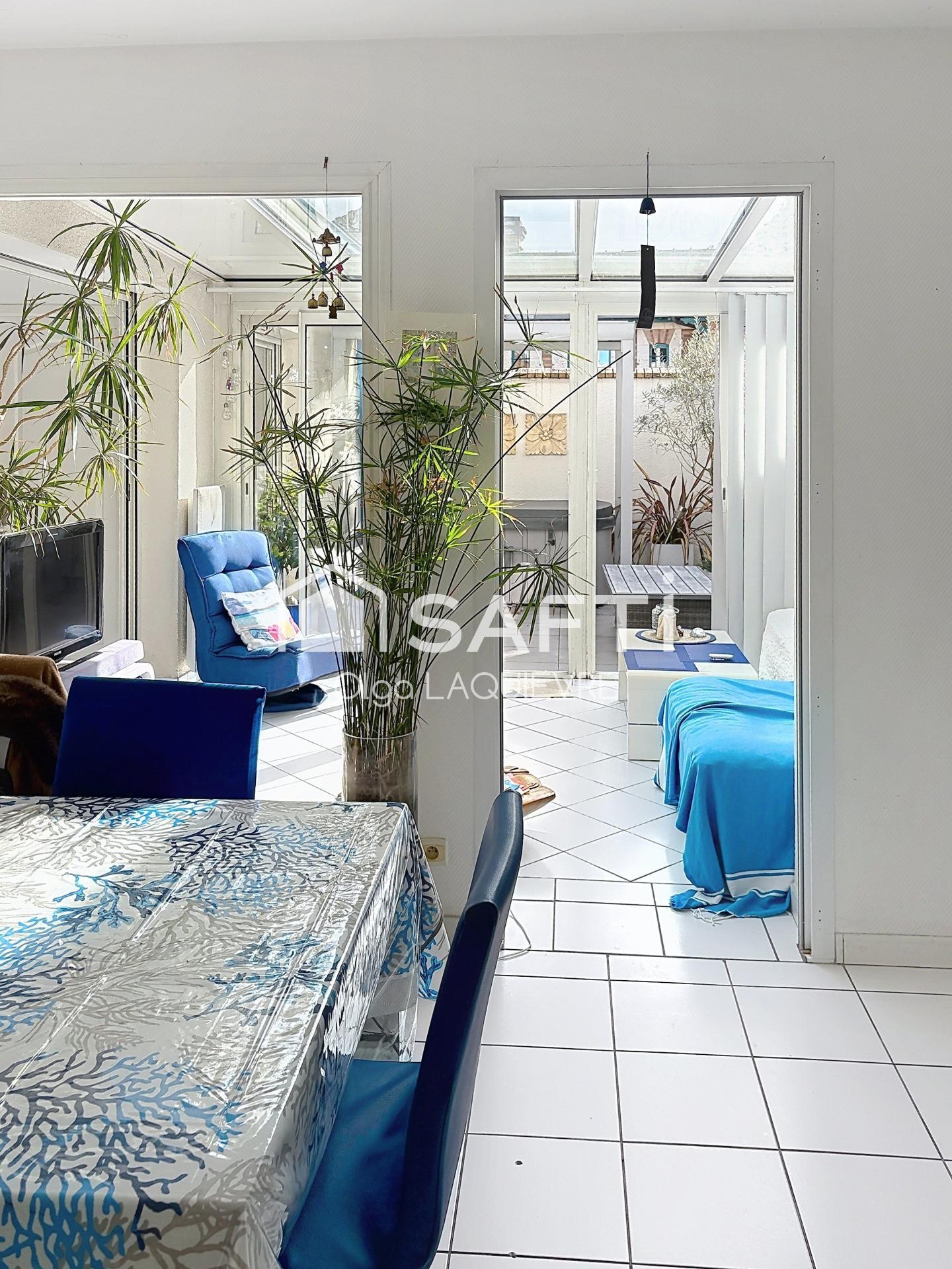 À l’extérieur, vous profiterez de deux terrasses, dont une superbe terrasse exposée plein Sud, à l’abri des regards, avec espace spa pour des moments de détente privilégiés.Un garage attenant, avec accès direct à la maison, complète ce bien. Un cadre de vie recherché, alliant confort, fonctionnalité et emplacement idéal.