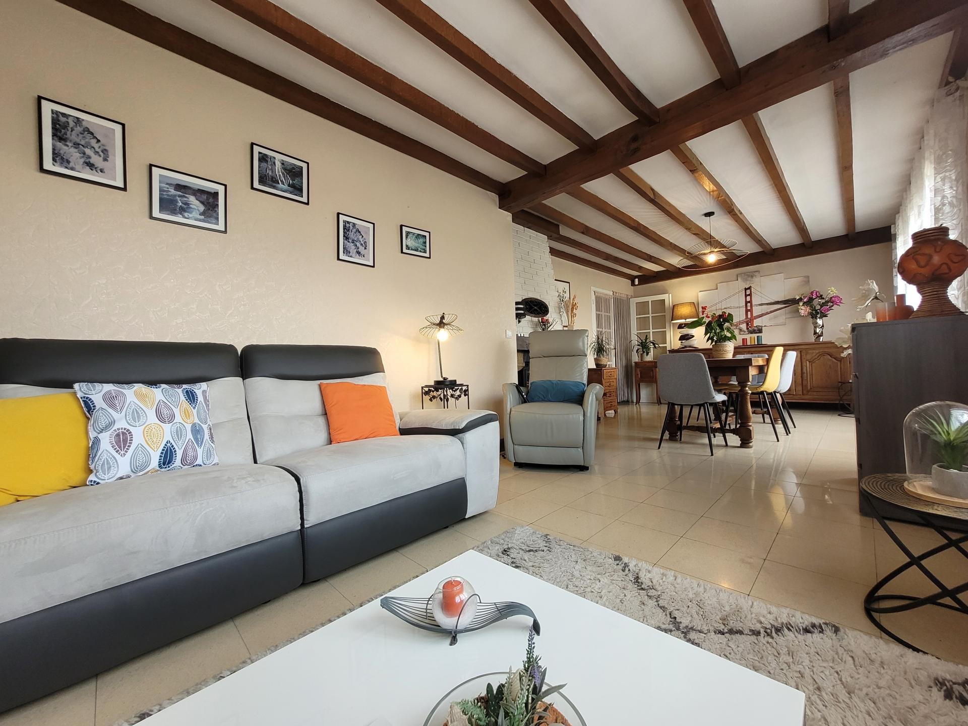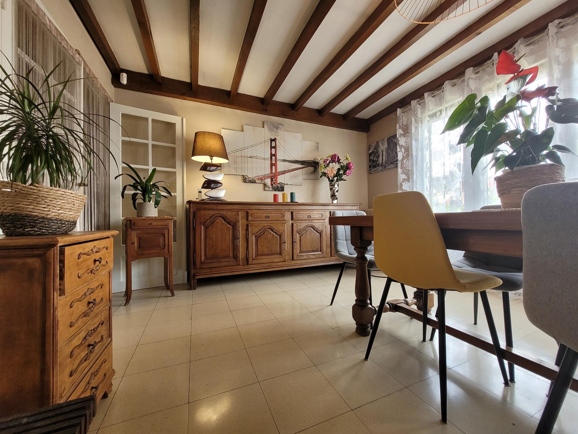 Cette maison de 100 m² se compose de 3 chambres, une cuisine équipée récente, un séjour de 28 m² avec une cheminée/insert et d'un sous-sol complet avec garage deux voitures.