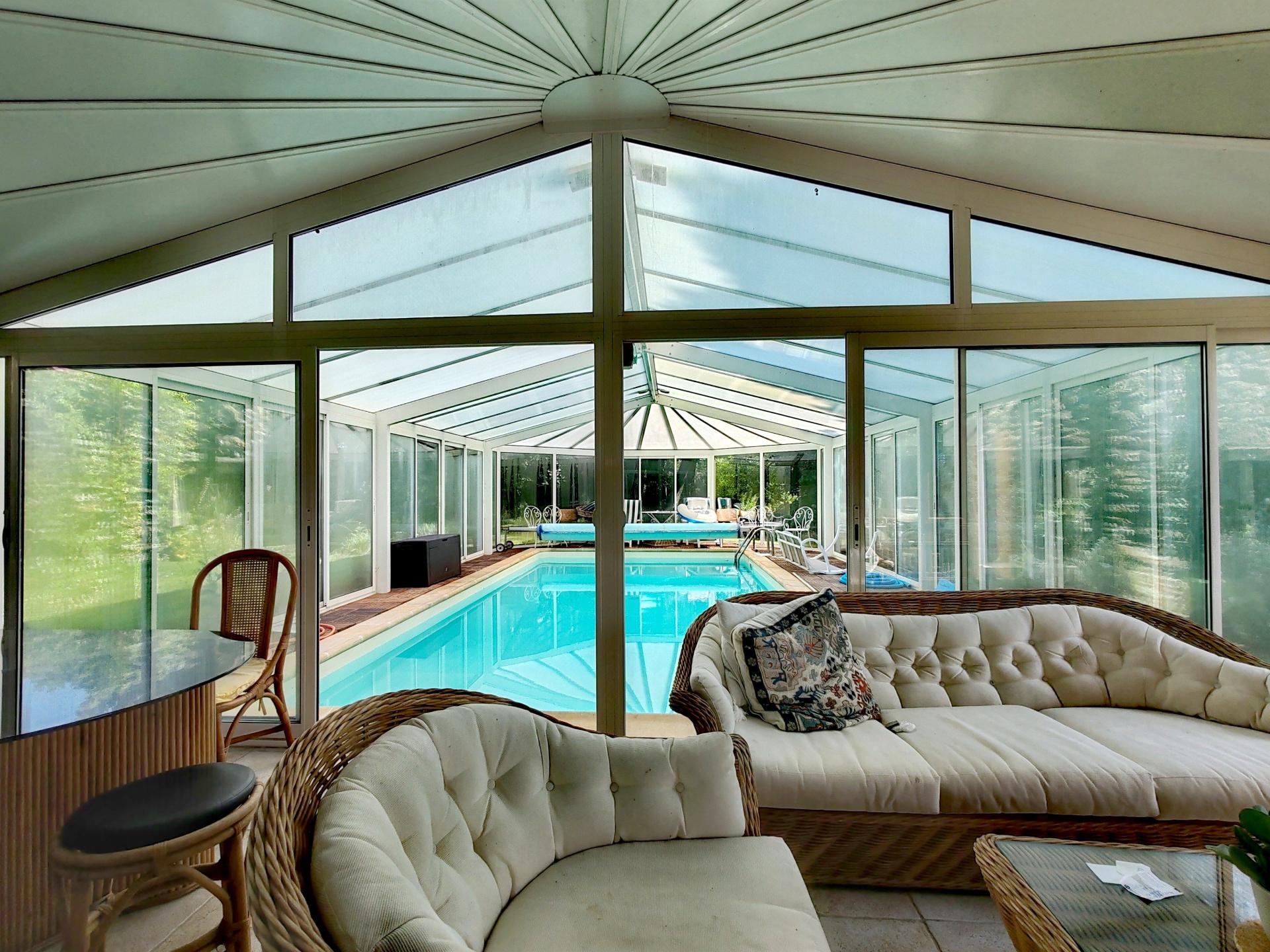 Ce bien RARE possède une PISCINE couverte, une grange de 30M2 au sol sur deux niveaux aménageable, un double garage, une cave.