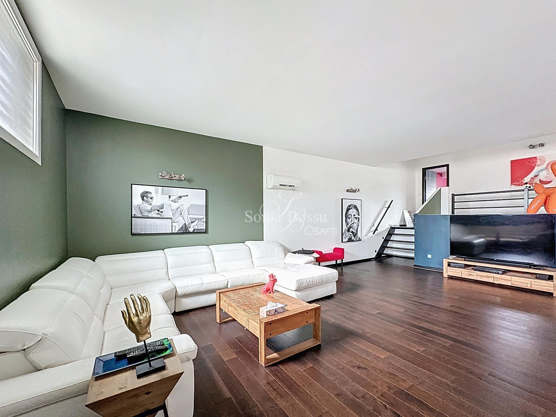 Amoureux de très beaux volumes? Cette maison de type LOFT vous séduira immédiatement. Une fois le hall d'entrée franchi, vous succomberez au charme de cette pièce de vie majestueuse... une hauteur de plafond rarissime, des espaces ouverts entre le salon, le séjour ainsi que la cuisine ouverte pour une surface de plus de 150m2... Sans parler de cette mezzanine appréciable de plus de 35m2 ouvert intégralement sur la pièce de vie.