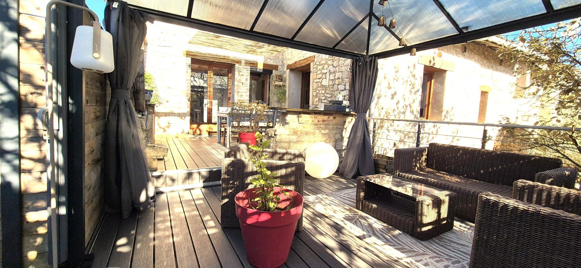 Venez découvrir cette maison d' environ 160 m² ( 125 m² en loi carrez) en pierre pleine de charme, très atypique, située au cœur du hameau de Romanèche, sur la commune de Hautecourt. Un bien rare qui séduira les amateurs d’authenticité et d’atmosphères chaleureuses.
