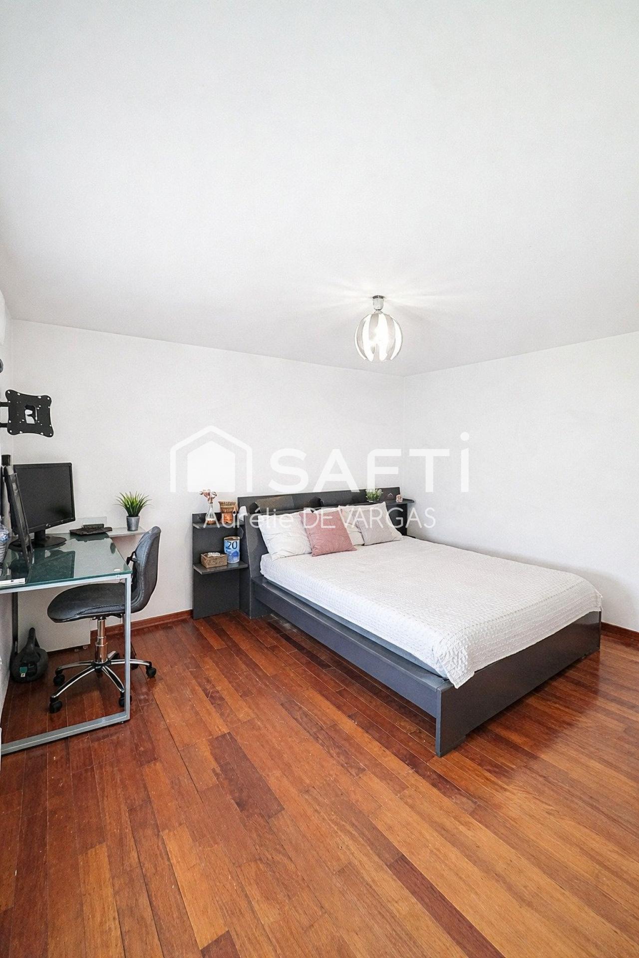Cette charmante maison individuelle de 167 m² sur un terrain de 397 m² comprend au rez-de-chaussée une chambre, une grande pièce de vie, une cuisine ouverte sur la salle à manger, une salle de bain avec douche, WC séparé. À l'étage, on y trouve 4 belles chambres une salle de bain avec baignoire et WC ainsi que les combles.
