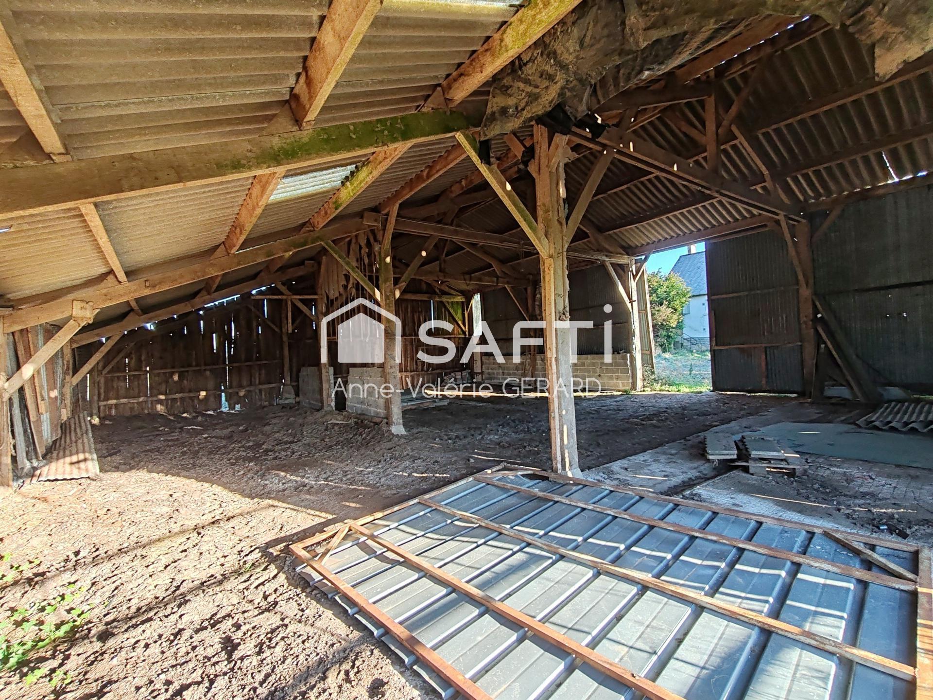 Environnement campagne, avec grand bâtiment (idéal pour stockage ou atelier), proche grand axe, avec beau potentiel après travaux !