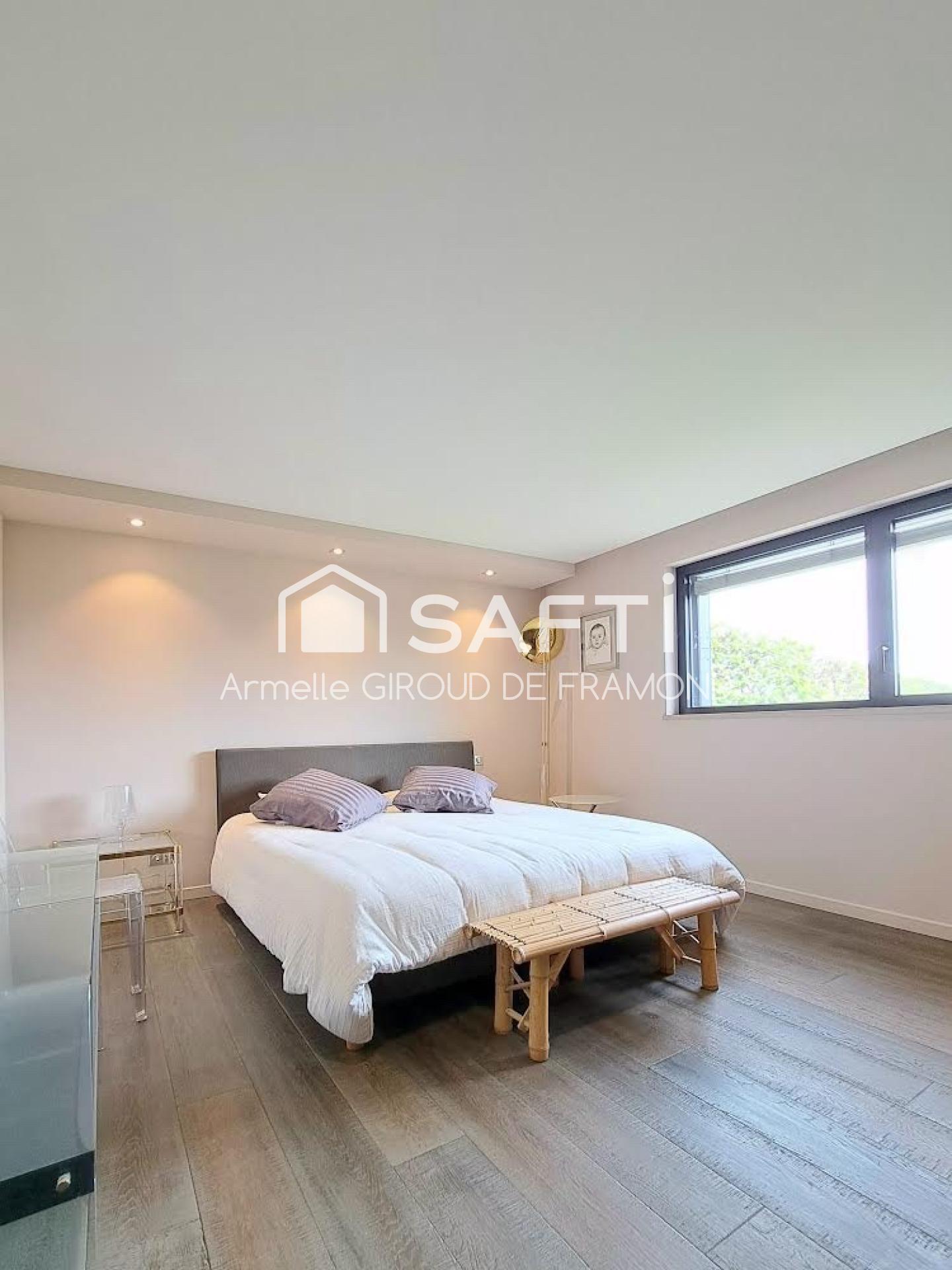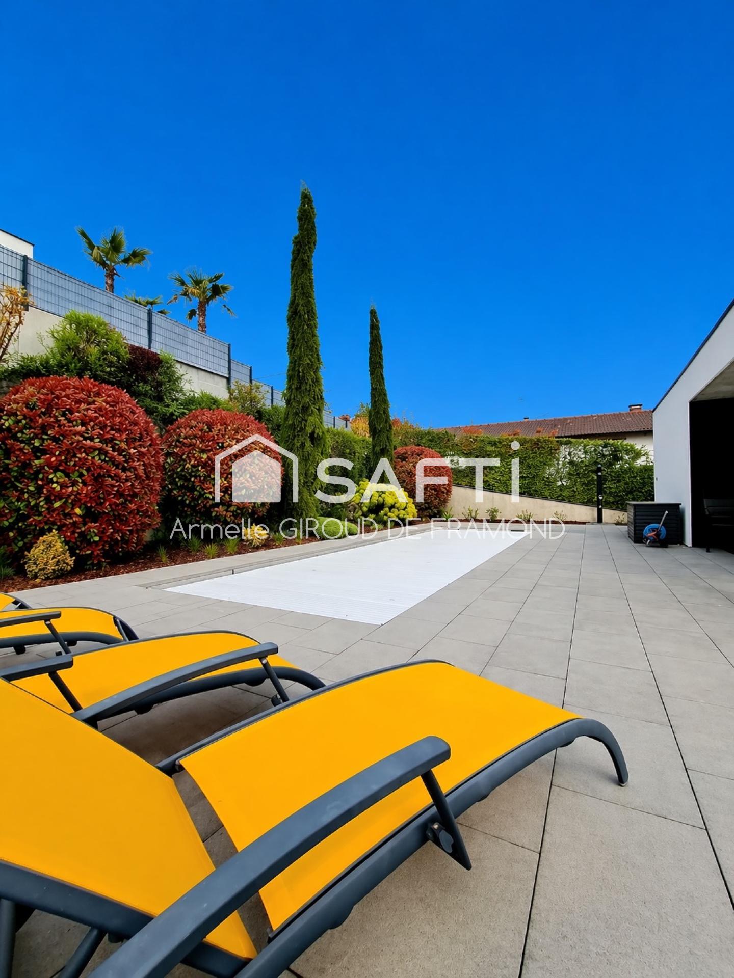 Dans un environnement résidentiel confidentiel, cette villa d’architecte de 2014 développe 236 m² habitables sur un terrain paysager de 800 m².