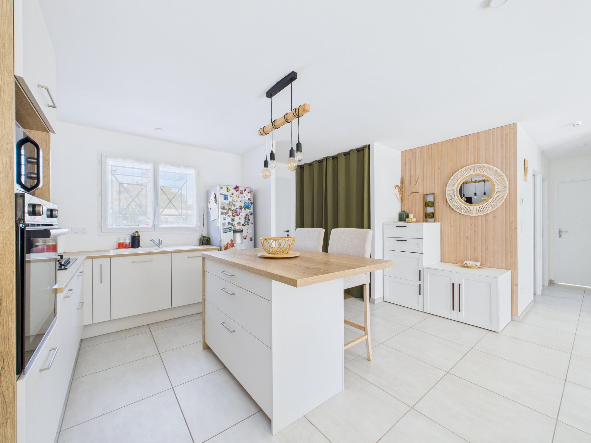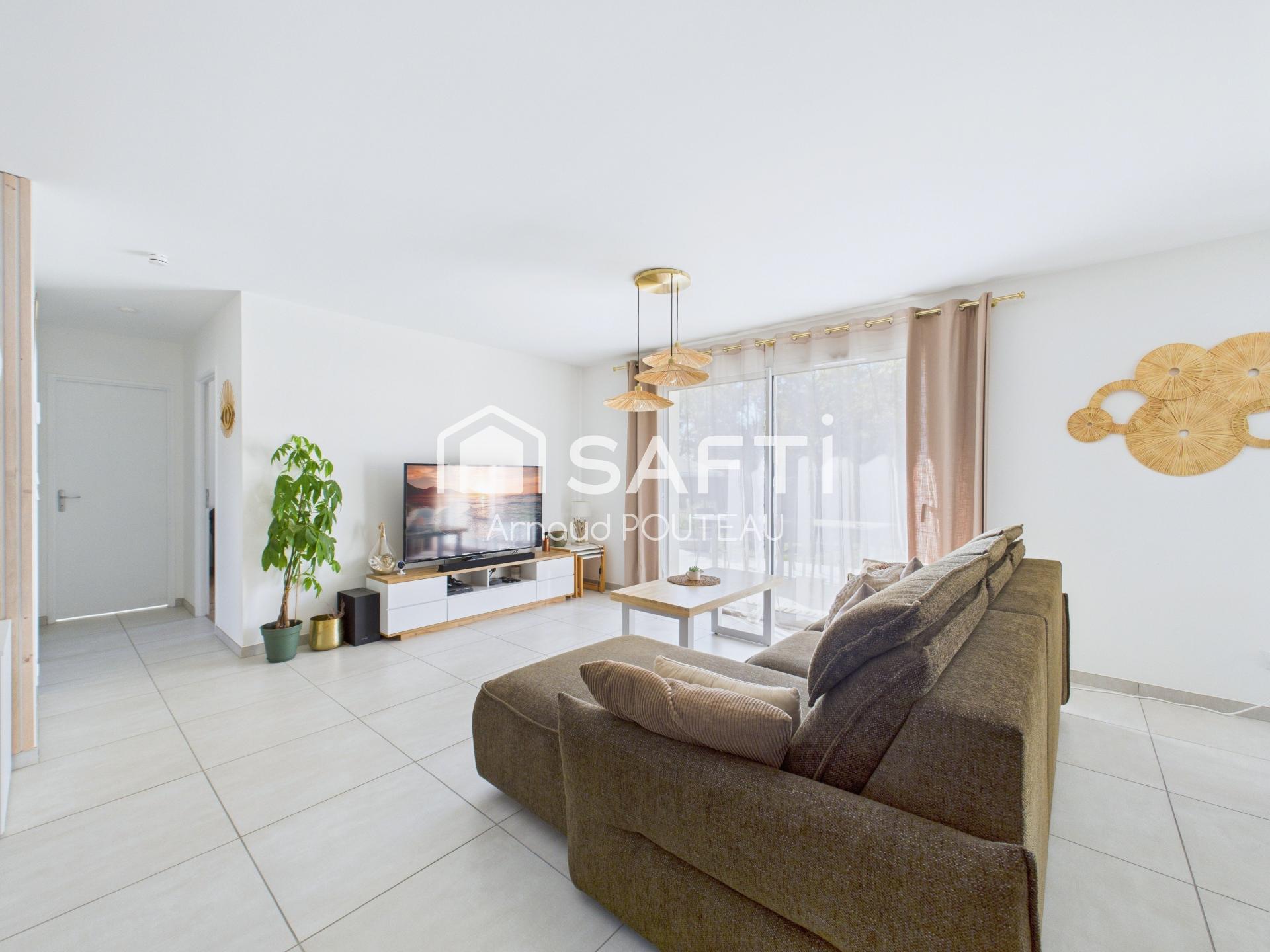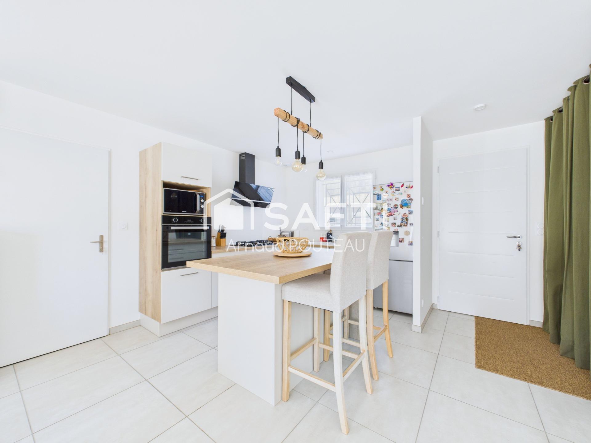 À l'intérieur, cette demeure de type 3 pièces, conforme aux normes RE2020 avec garantie décennale, propose un agencement optimal. L'espace de vie se compose d'un salon salle à manger lumineux, d'une cuisine ouverte entièrement équipée, de deux chambres confortables, d'une salle de bain moderne et d'un WC indépendant. Chaque élément de cette maison récente a été pensé pour offrir un cadre de vie fonctionnel, confortable et contemporain.