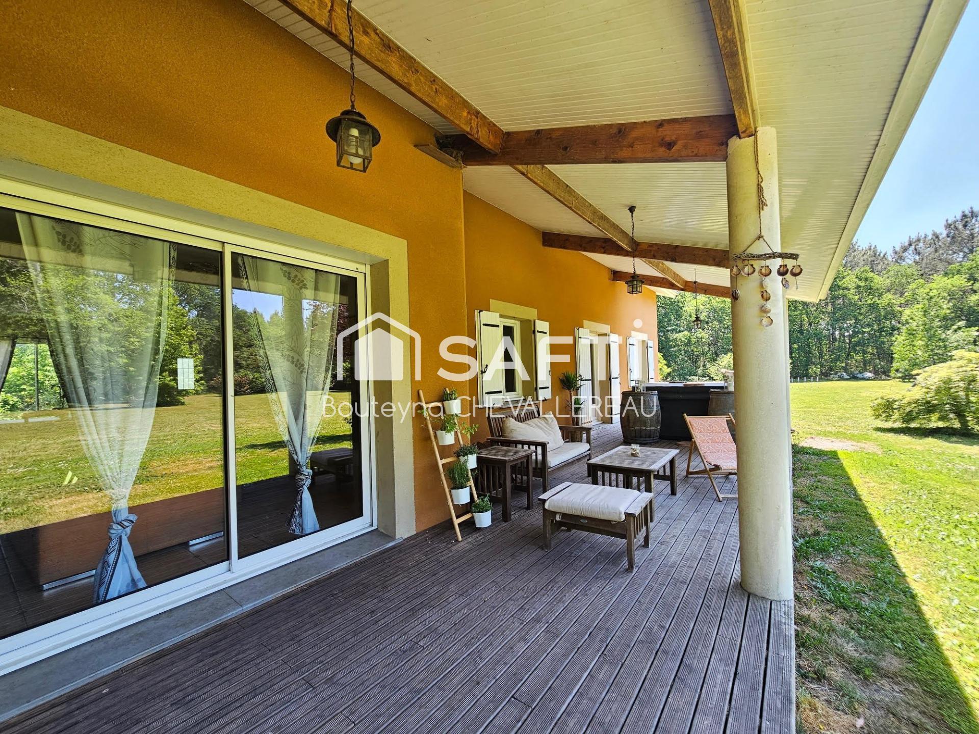Sur un terrain clos de plus de 2ha, sans vis-à-vis, une belle terrasse couverte, un carport de plus de 60m2 ainsi qu'un hangar couvert et séparé de 110m2 environ, complètent le bien.