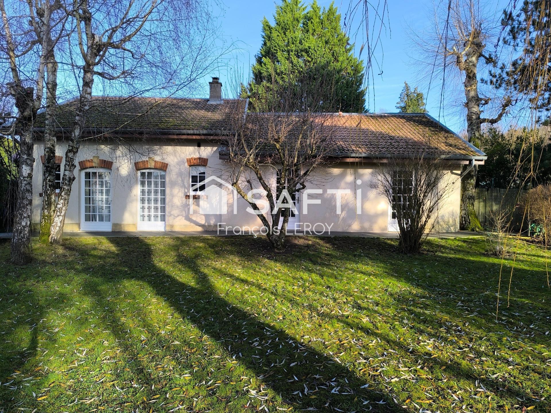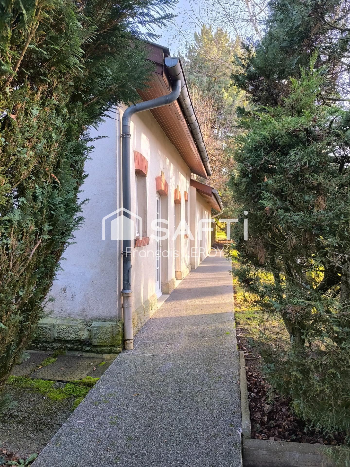 La maison de caractère de 1900 et sa dépendance sont édifiées sur un très beau terrain arboré de 22 ares sans vis à vis. Elle est composée d'une entrée, d'un bureau, d'un grand salon donnant sur la terrasse et le parc, d'une cuisine et d'un WC. A l'étage, l'espace est partagé entre 3 chambres, un dressing, un dégagement et une salle de bain.