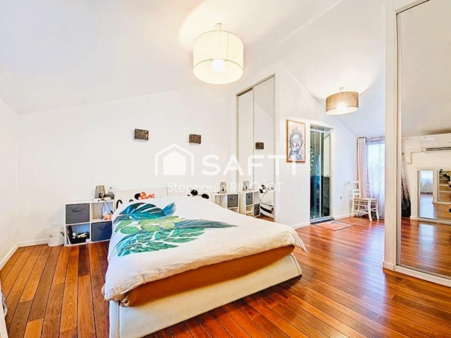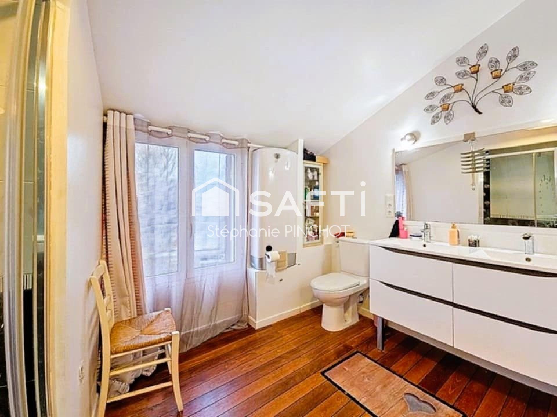 L’intérieur dévoile de beaux volumes et une distribution fonctionnelle : quatre chambres dont une suite parentale, une pièce polyvalente pouvant accueillir un bureau ou un dressing, une salle de bains et deux salles d’eau. La cuisine équipée et le salon spacieux, baigné de lumière, offrent des espaces de vie chaleureux et conviviaux, idéals pour partager de beaux moments en famille ou entre amis.