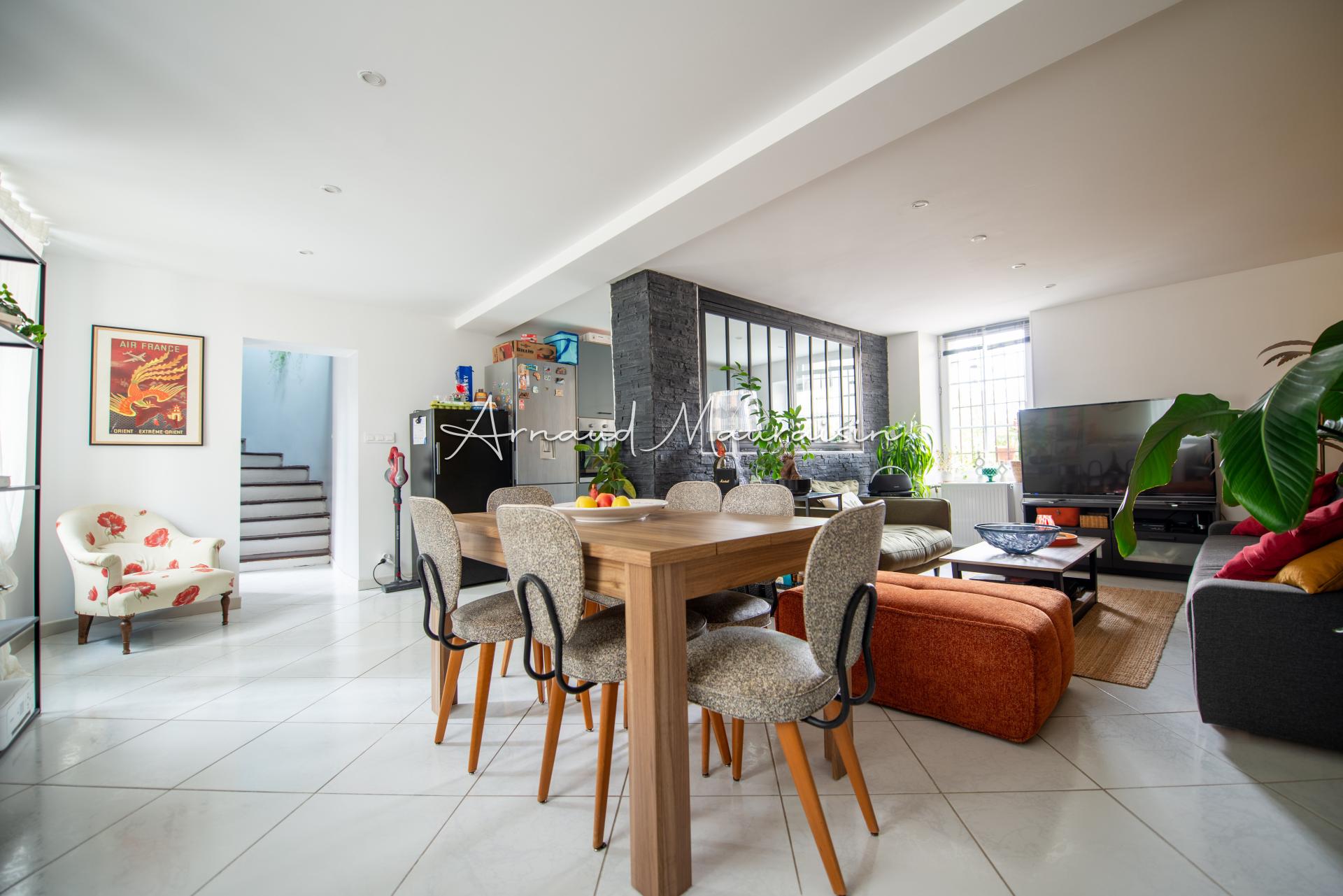 Au 1er étage, On trouve la pièce de vie principale très lumineuse avec sa cuisine ouverte et son salon / salle à manger.
