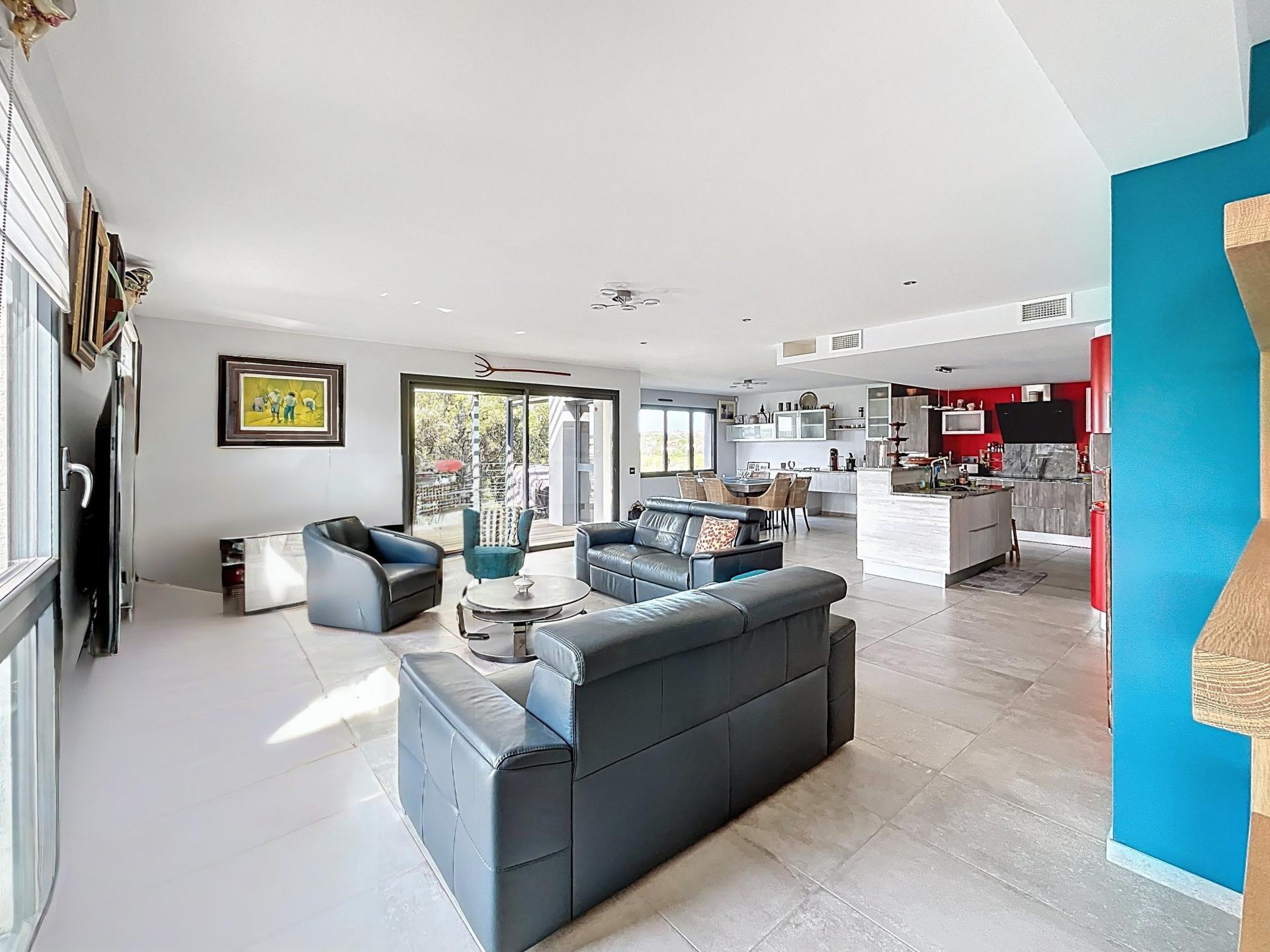 Implantée sur un terrain de 550 m², piscinable, avec vue panoramique sur le golf, cette villa construite en 2016, conforme aux normes PMR est équipée de la domotique, offre 256 m² sur deux niveaux, avec des volumes généreux et une luminosité exceptionnelle.