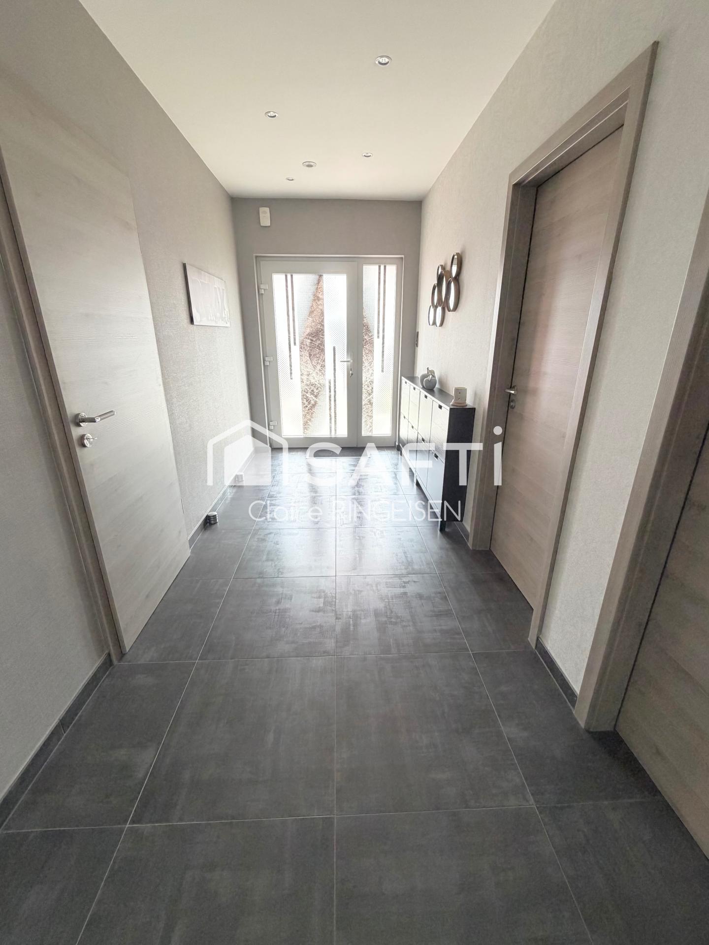 Située à Kalhausen, dans un environnement calme, cette maison contemporaine construite en 2016 de 160m2 environ, édifiée sur un terrain de 1 346m2 offre un cadre de vie privilégié, alliant confort moderne et sérénité absolue.