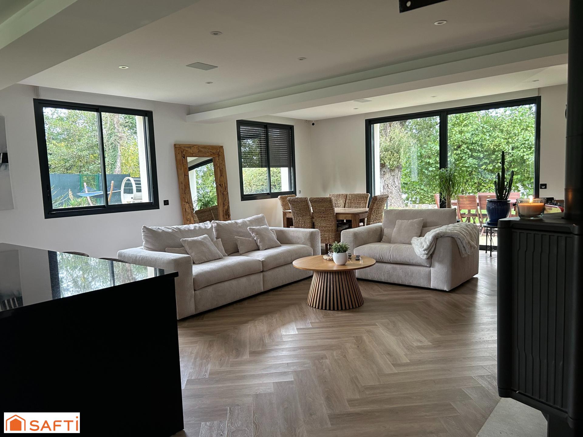 Vaste séjour lumineux de plus de 53 m² avec cuisine ouverte, suite parentale, buanderie, portail électrique et nombreux stationnements