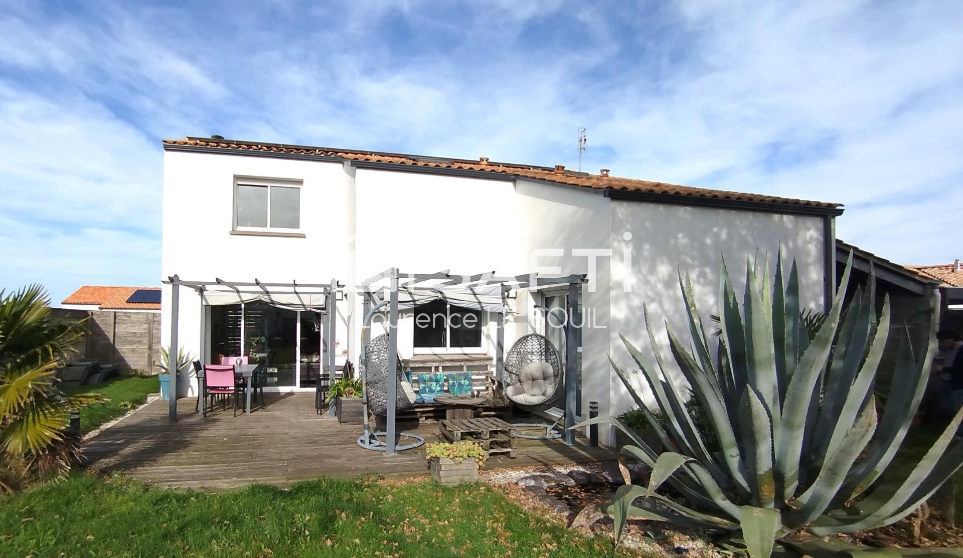 Laurence Le Gouil vous propose en exclusivité cette charmante maison de tendance actuelle située à La Chaize-Giraud. A seulement 10 minutes des plages de Brétignolles ou de Saint-Gilles-Croix-de-Vie et 20 minutes des Sables d'Olonne, cette habitation bénéficie d'un environnement paisible, proche des services. Son exposition sud offre une belle luminosité, le terrain clos de 555 m² est agrémenté d'une vaste terrasse et d'un jardin arboré et paysagé.