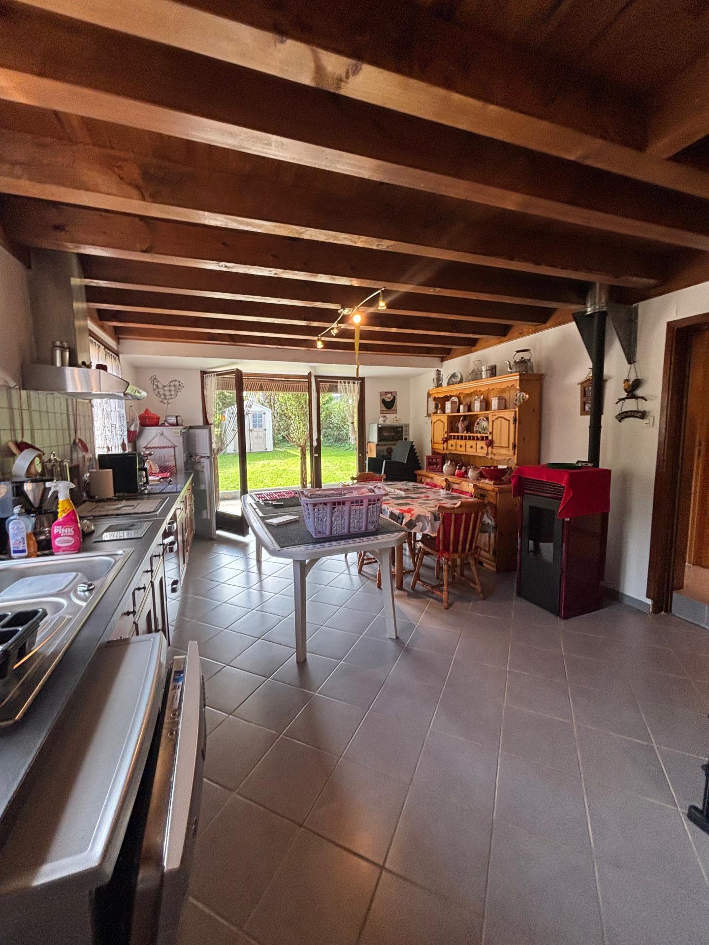Le chauffage est assuré par un poêle à pellets, offrant confort et économie d’énergie.