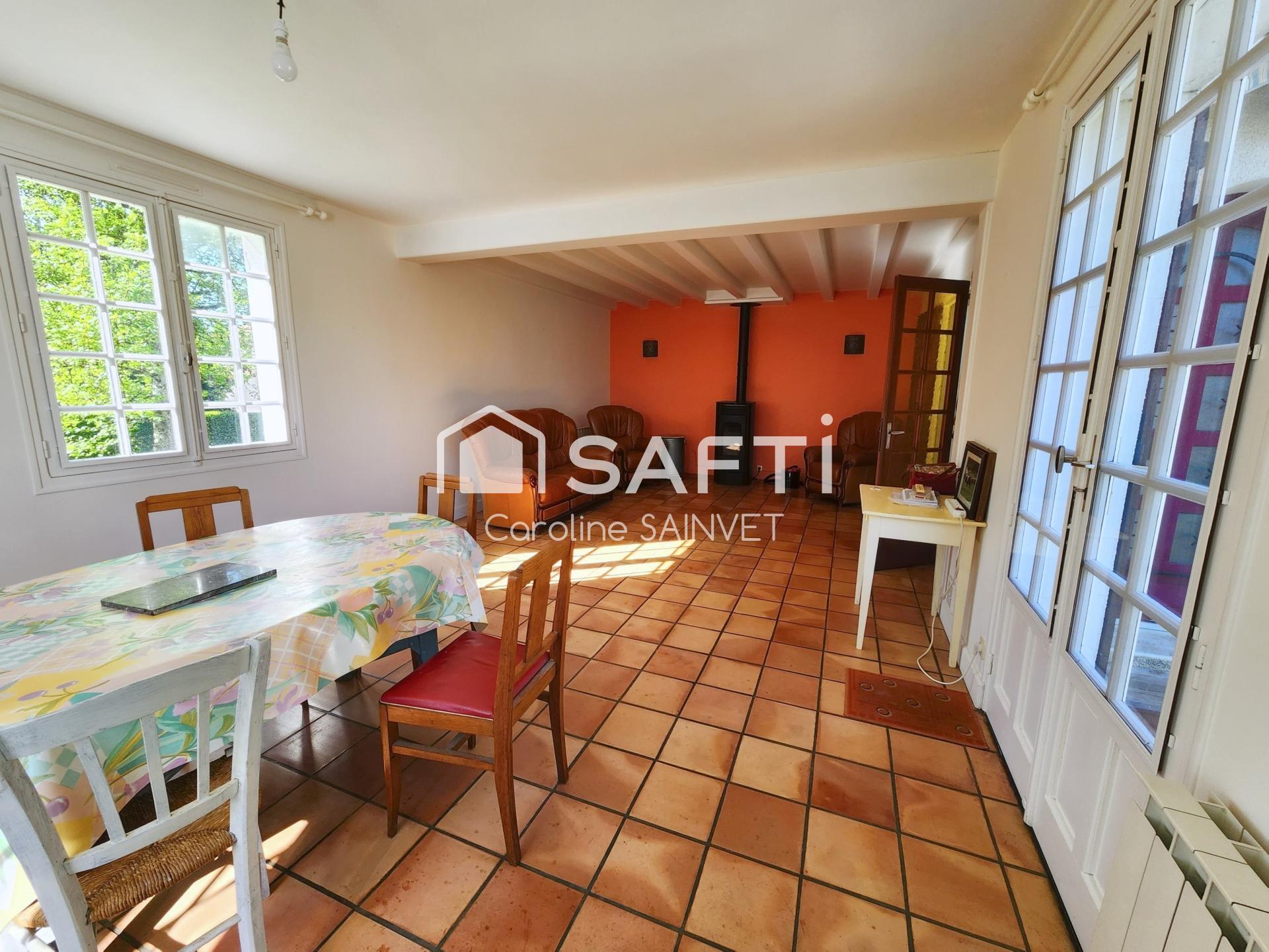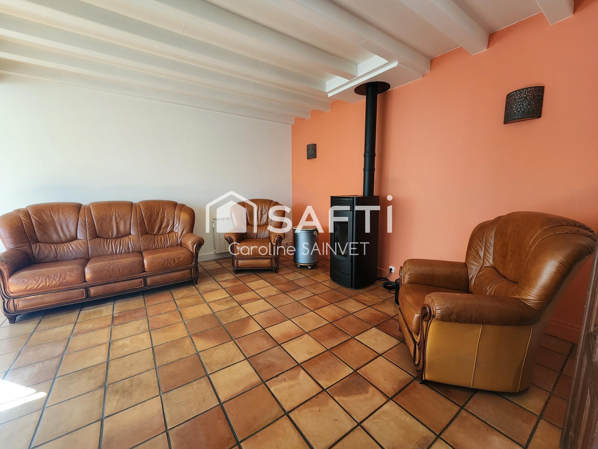À l’intérieur, environ 120?m² comprenant 3 chambres spacieuses dont 2 avec dressing, un séjour avec poêle à granulés récent, une cuisine équipée, une salle de bain, 2 WC, une cave et une chaufferie avec adoucisseur. Des travaux de rafraîchissement permettront de personnaliser ce bien aux nombreux atouts.