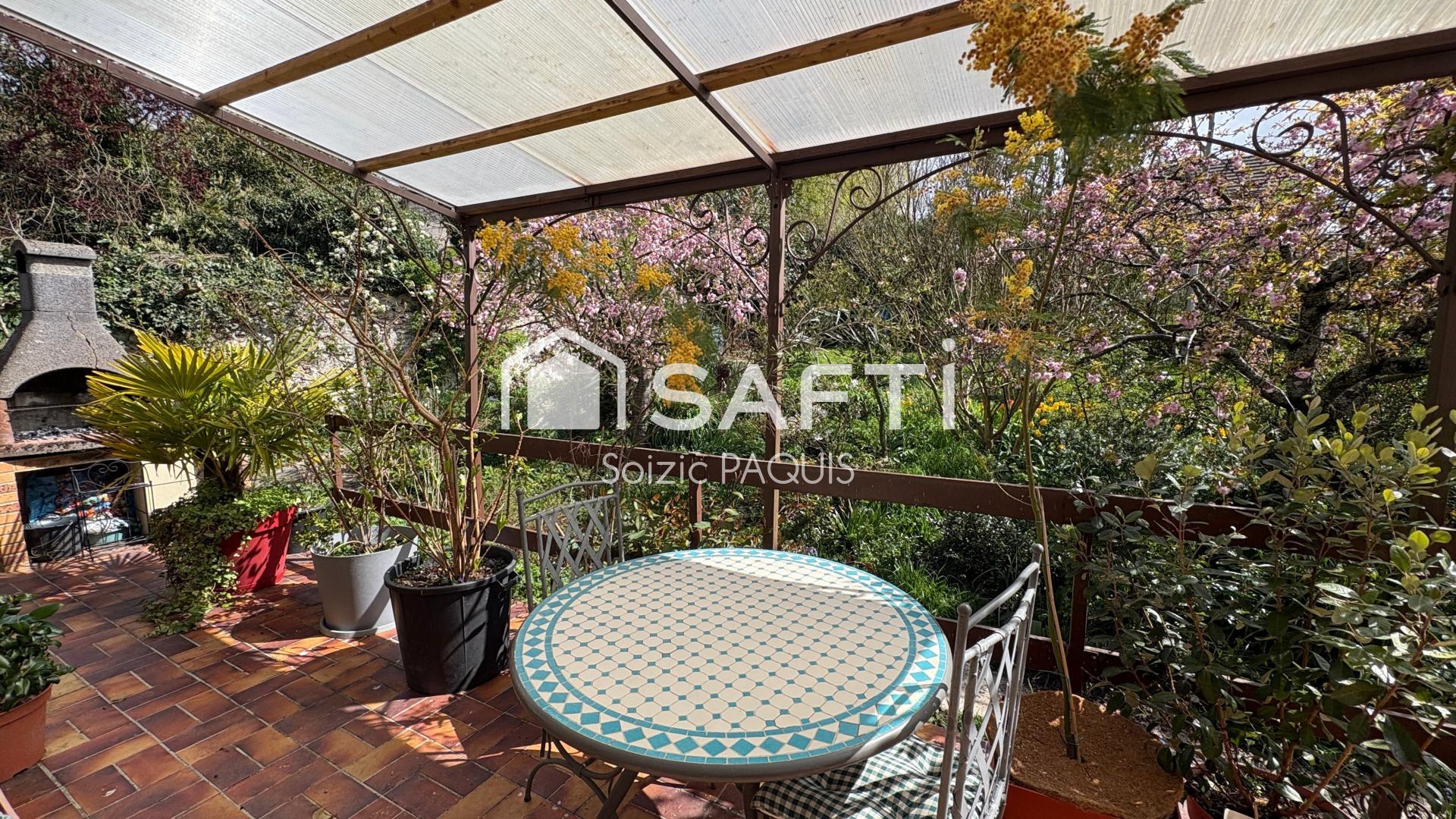 Édifiée sur un beau terrain arboré et joliment fleuri d’environ 900 m², la maison dispose également de plusieurs emplacements de stationnement.