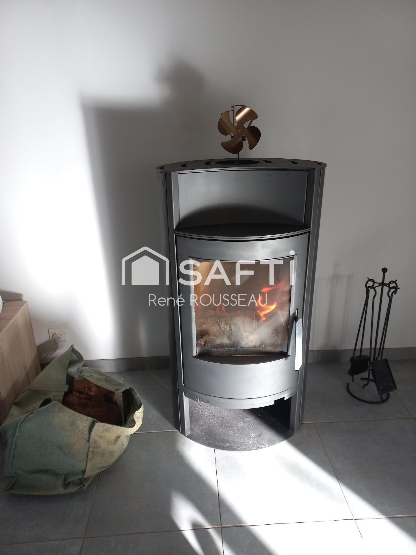Cette maison est composée d'une pièce de vie lumineuse (grande baie vitrée) dotée d'un poêle à bois avec sa cuisine ouverte (aménagée et toute équipée) donnant sur le jardin.
