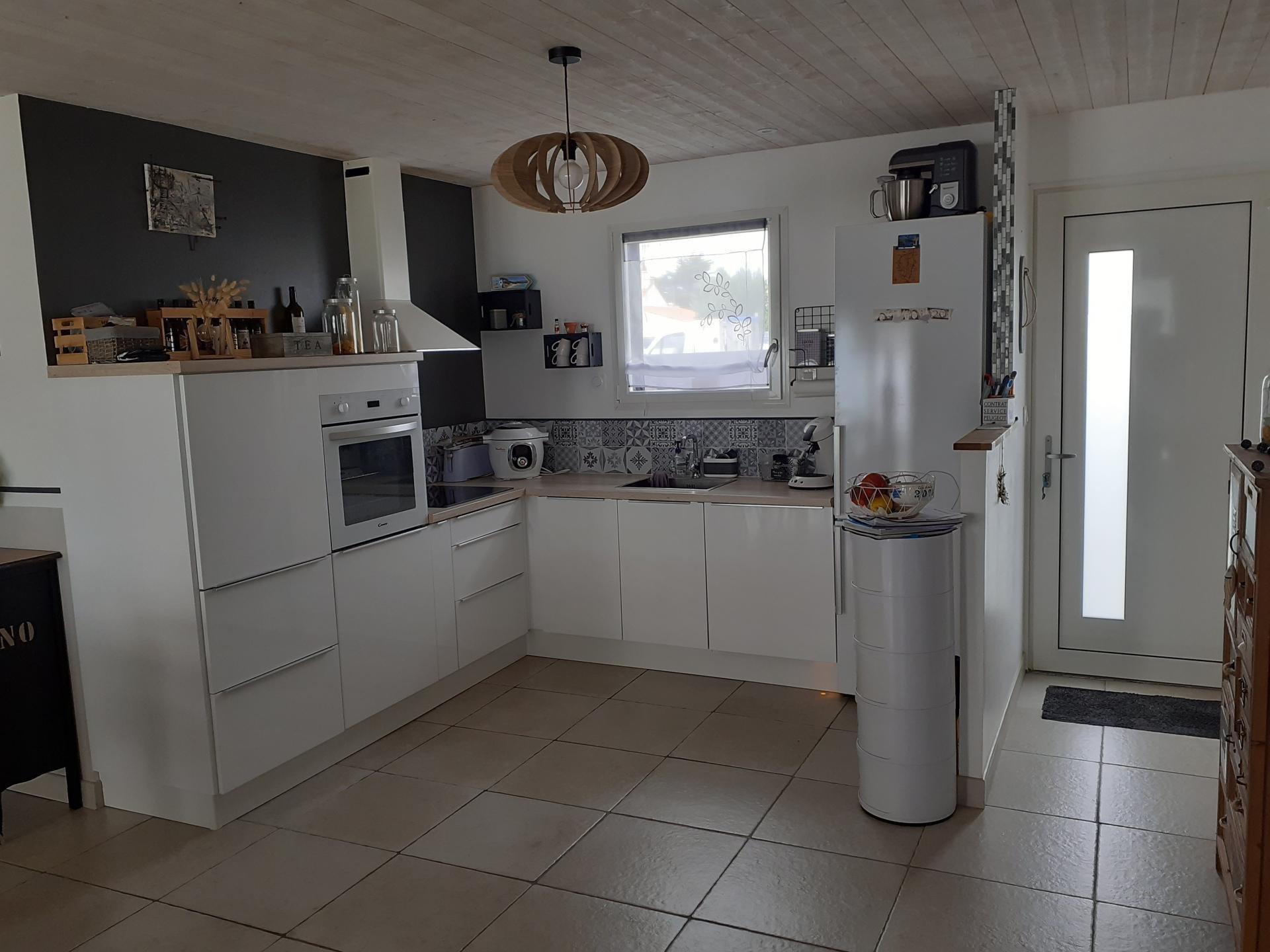 A la Guérinière, à 100 mètres de la plage, maison de plain pied de 97 m2 de surface habitable toute récente et une chambre indépendante avec salle d'eau, dans une impasse non loin du bourg.