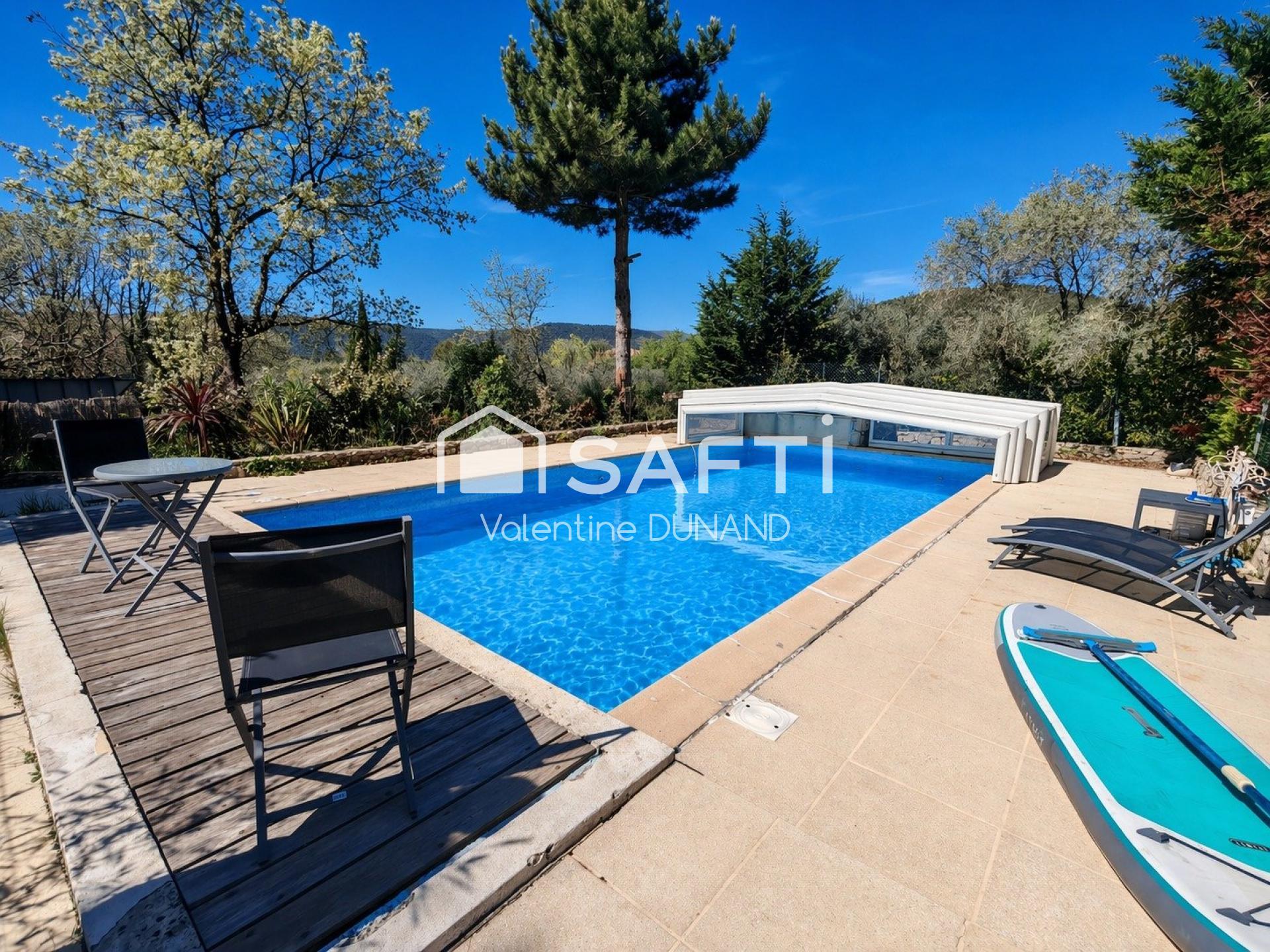 Implantée sur un terrain d’environ 5 397 m², la propriété offre un véritable havre de paix avec jardin arboré, oliveraie et piscine sécurisée de 10 x 5 m. Un lieu idéal pour profiter pleinement du climat méditerranéen en famille ou entre amis.