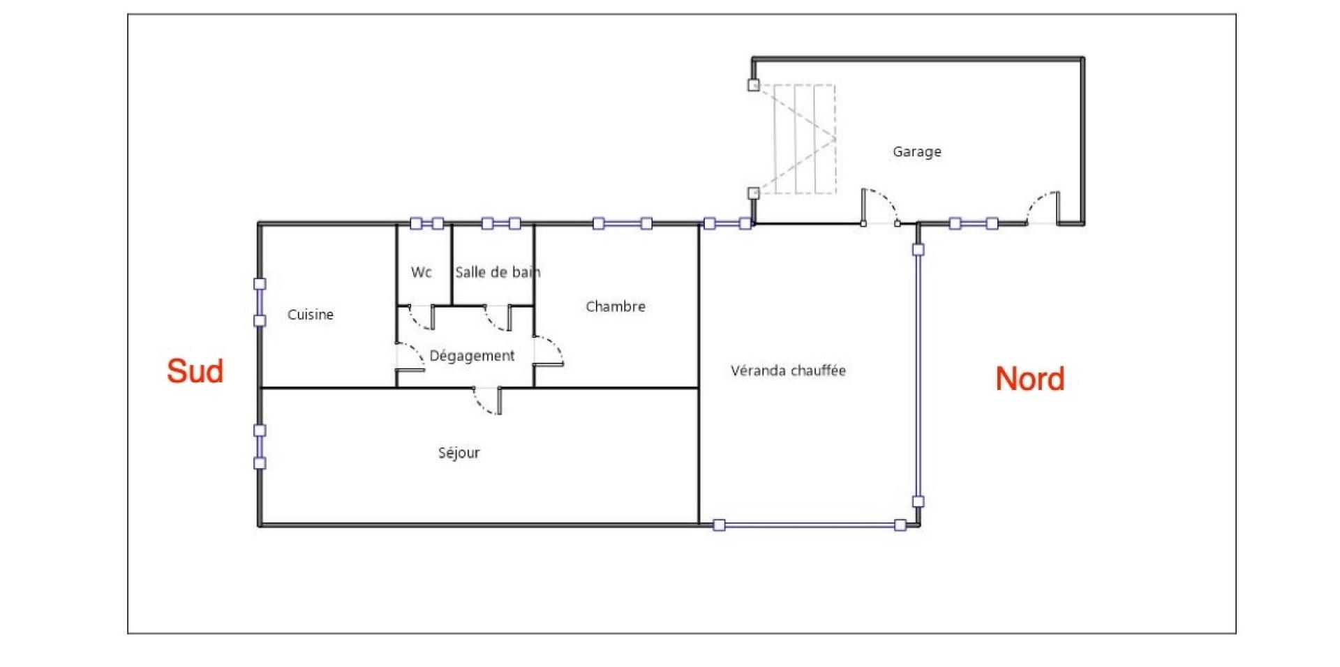 1ère possibilité: Faire des travaux de rénovation avec la possibilité d'aménager le garage en chambre supplémentaire (donc obtenant une surface habitable 85 m2).