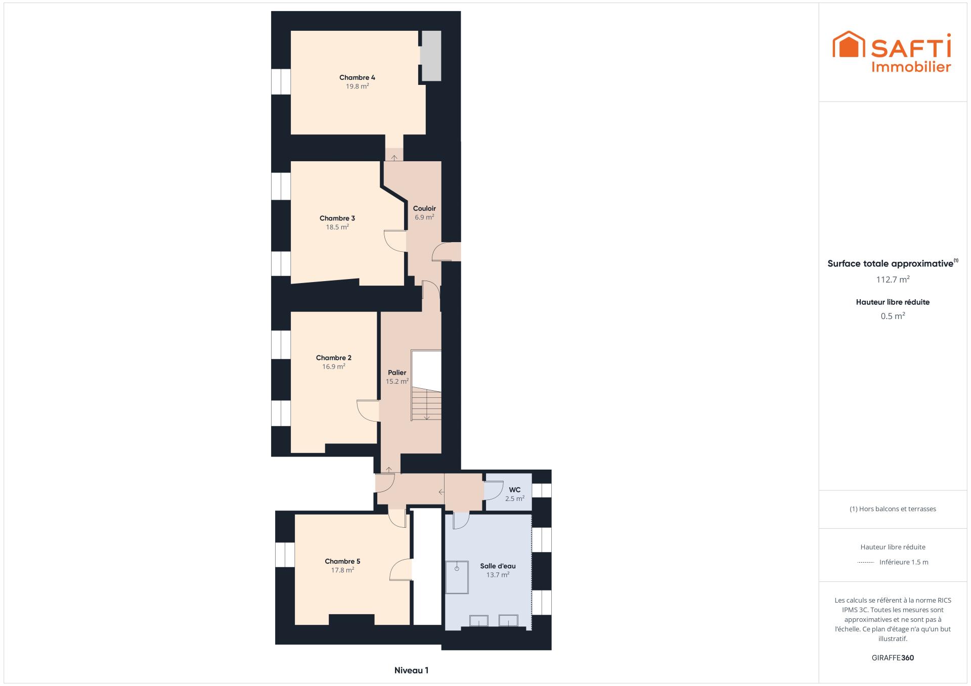 À l’étage, le palier dessert quatre chambres spacieuses, une salle d’eau et un WC séparé.
