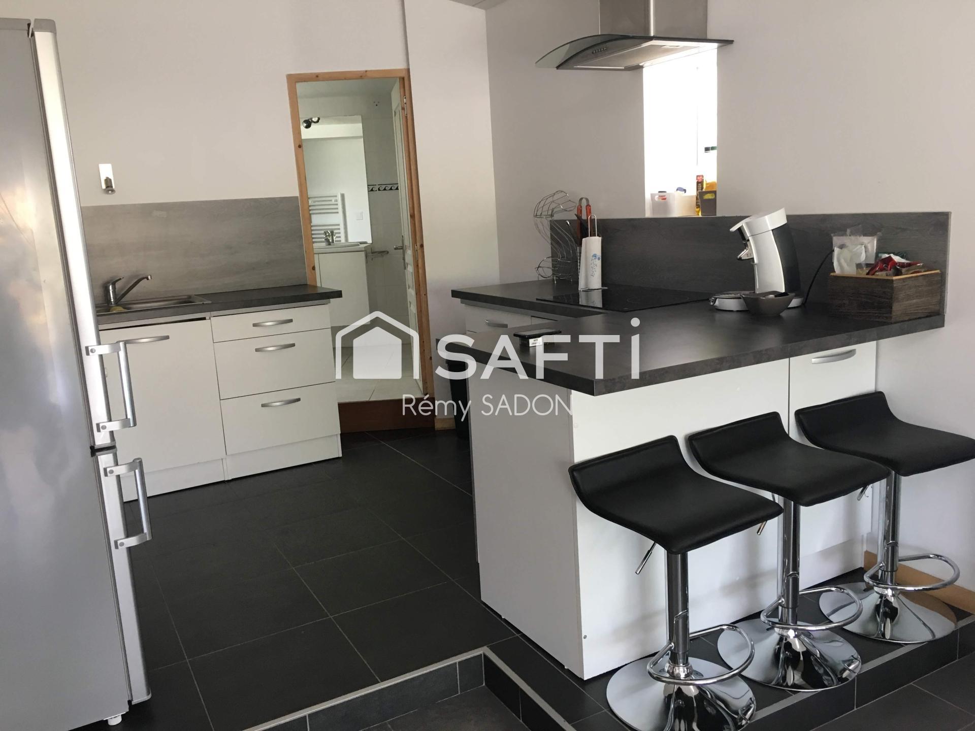 - Une maison avec rafraichissement à prévoir de 67m2 avec terrasse couverte + jardin 90 m2, 1 chambre, 2 pièces pouvant servir de couchage/bureau, salon, salle à manger, salle de bain