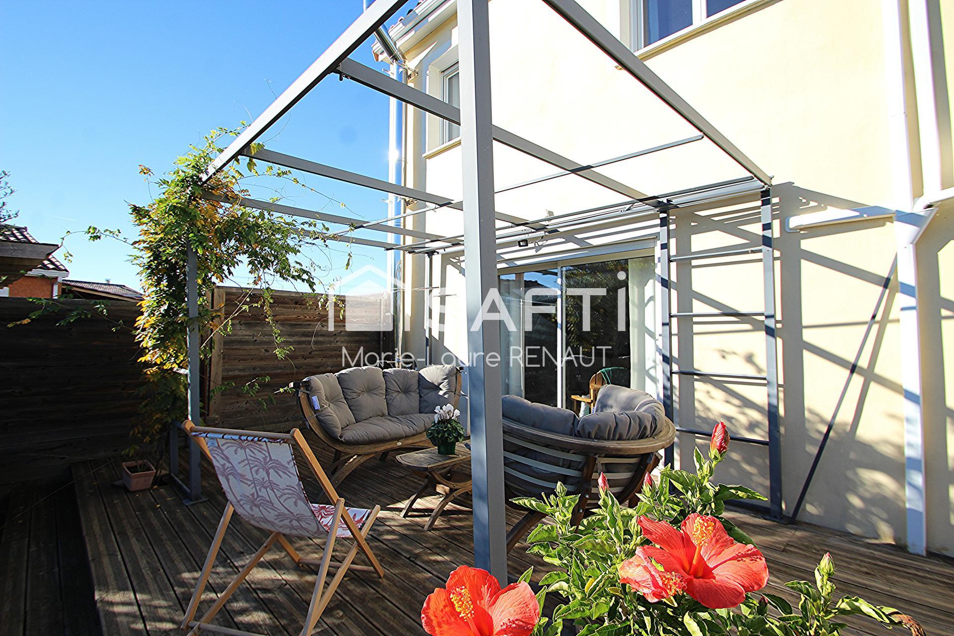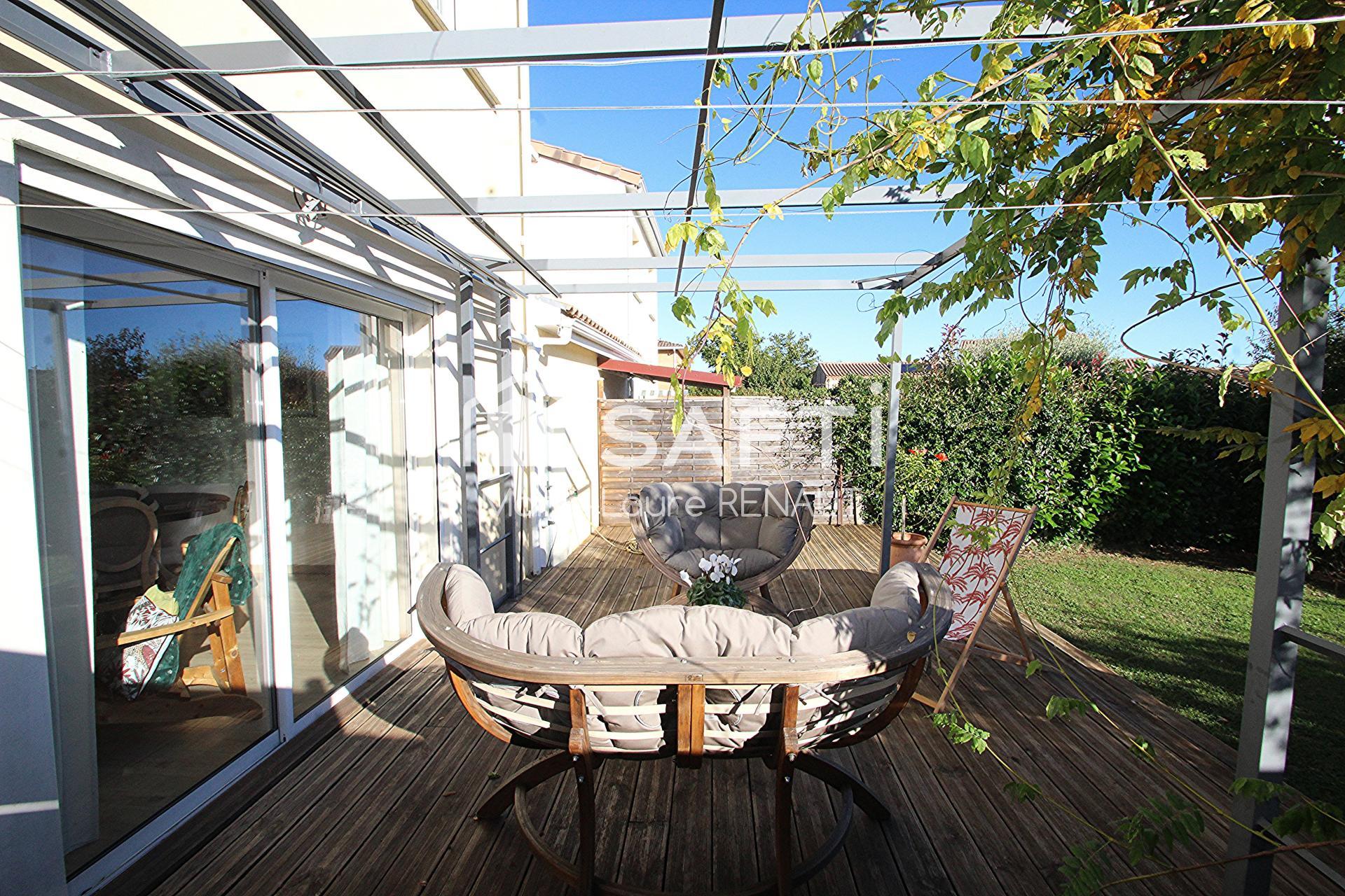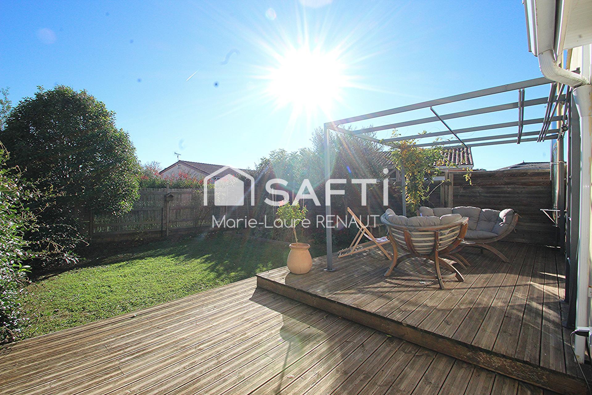 Maison avec jardin, grande terrasse, garage, carport, 3 chambres.