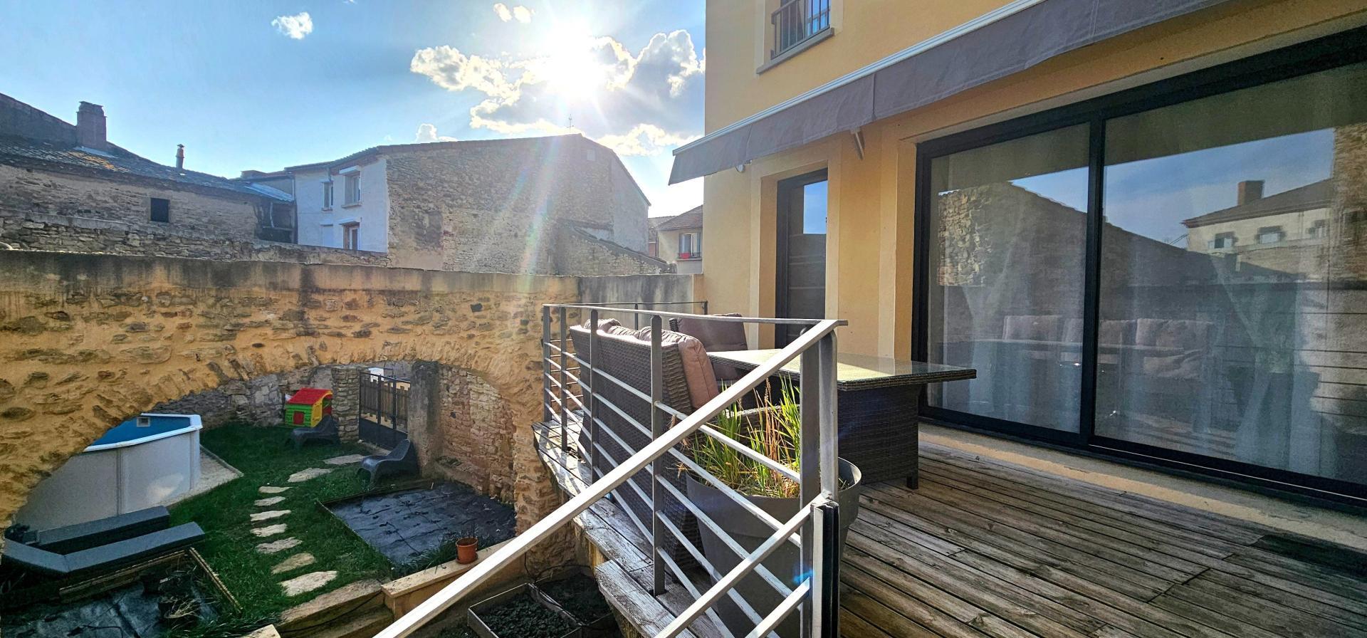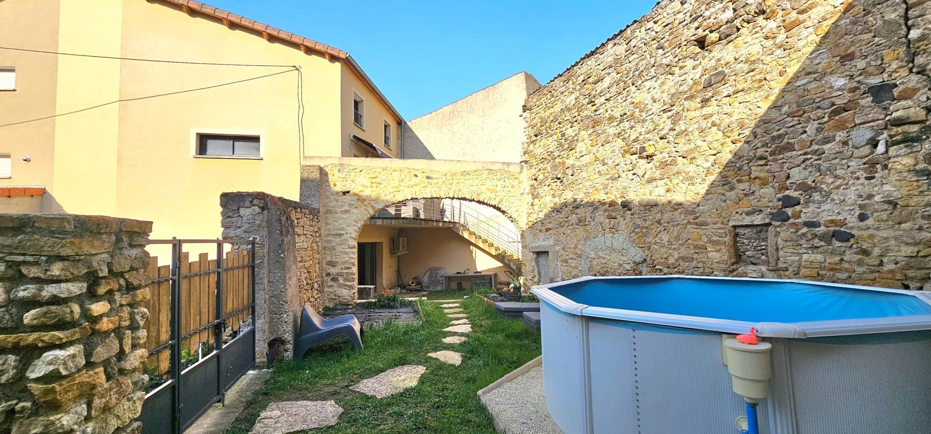À l’extérieur, laissez-vous charmer par une magnifique terrasse bien exposée et un jardin intimiste, sublimé par la pierre et une superbe arche voûtée, offrant un véritable espace de détente avec piscine, à l’abri des regards.