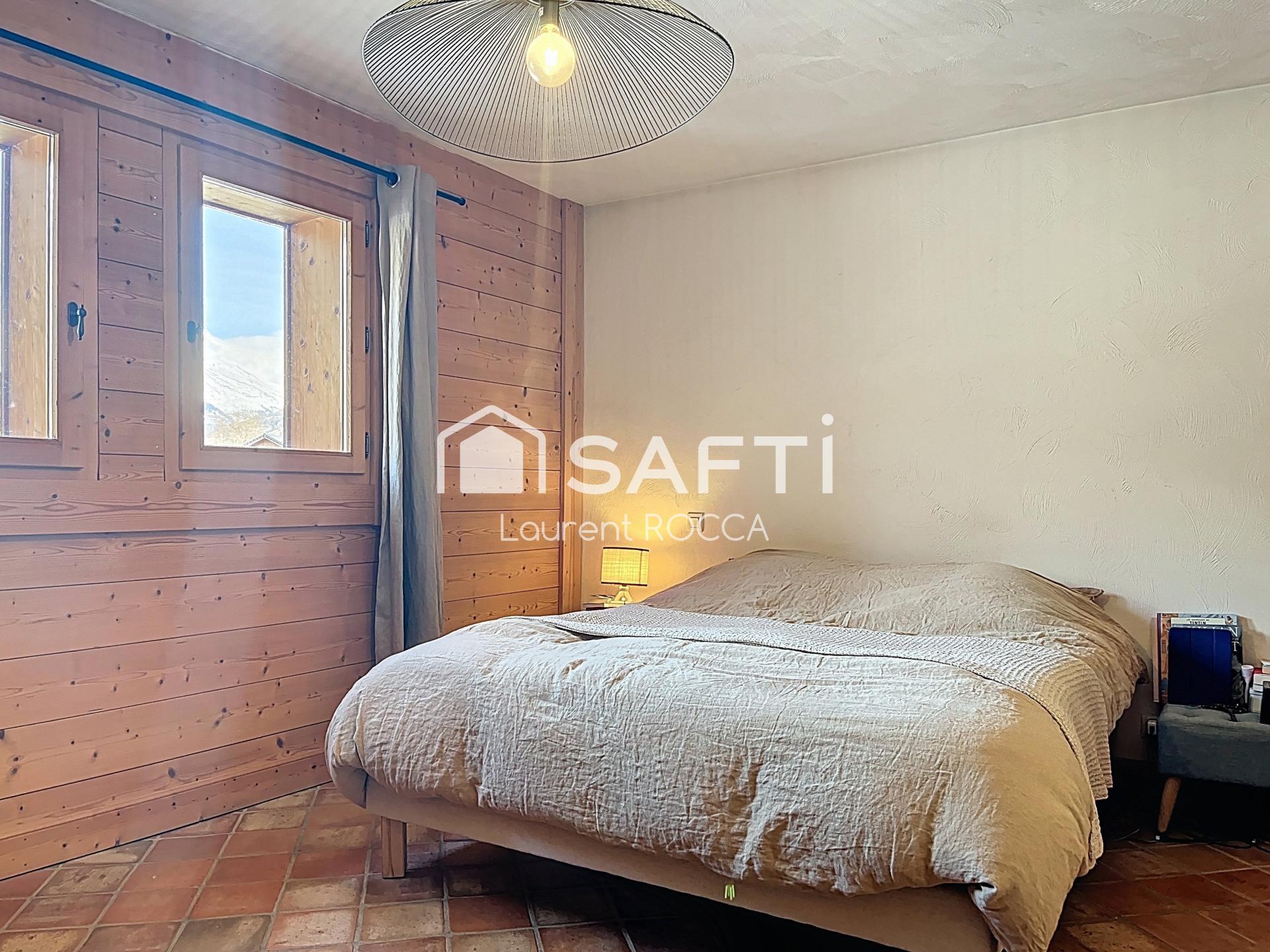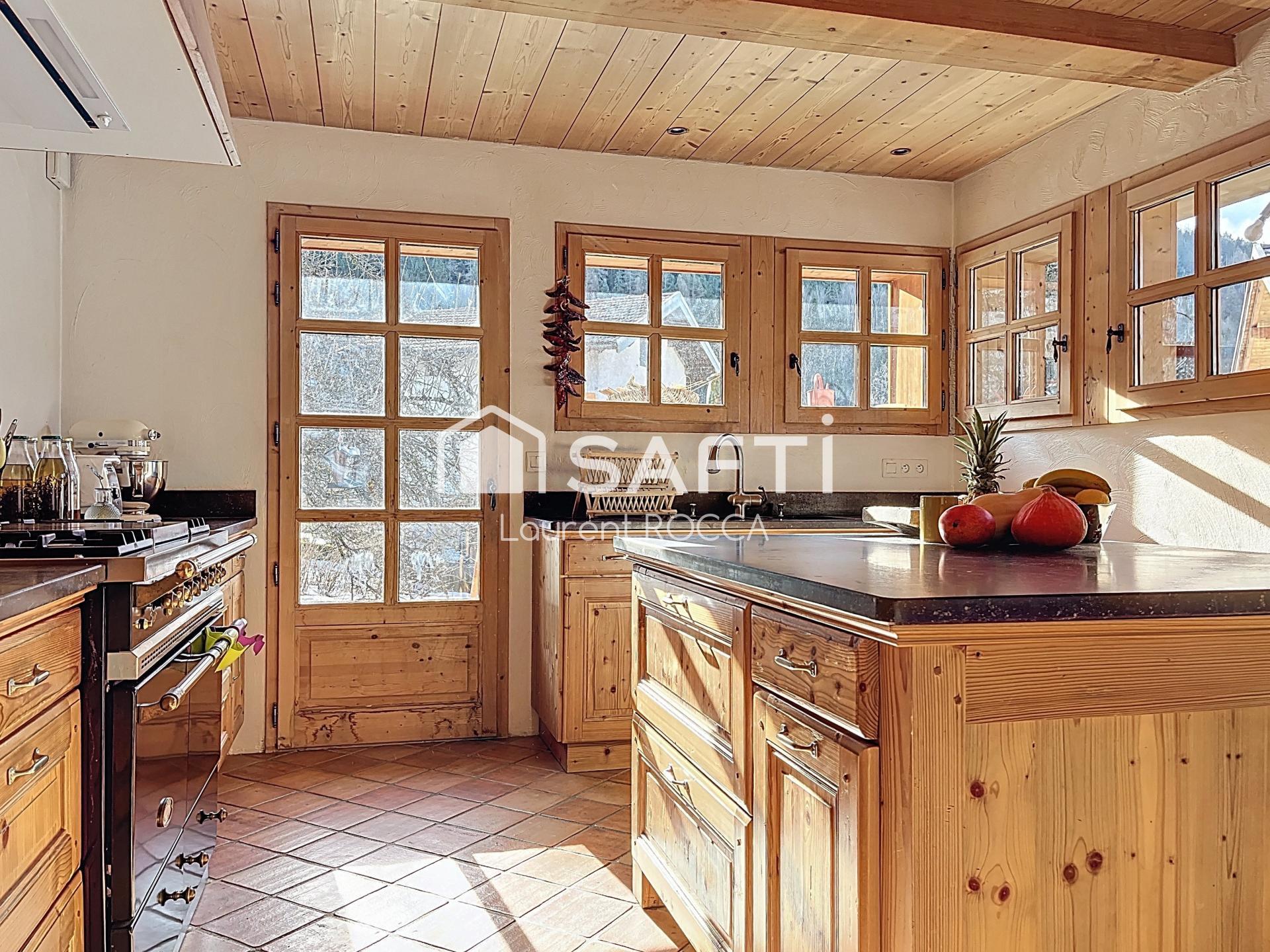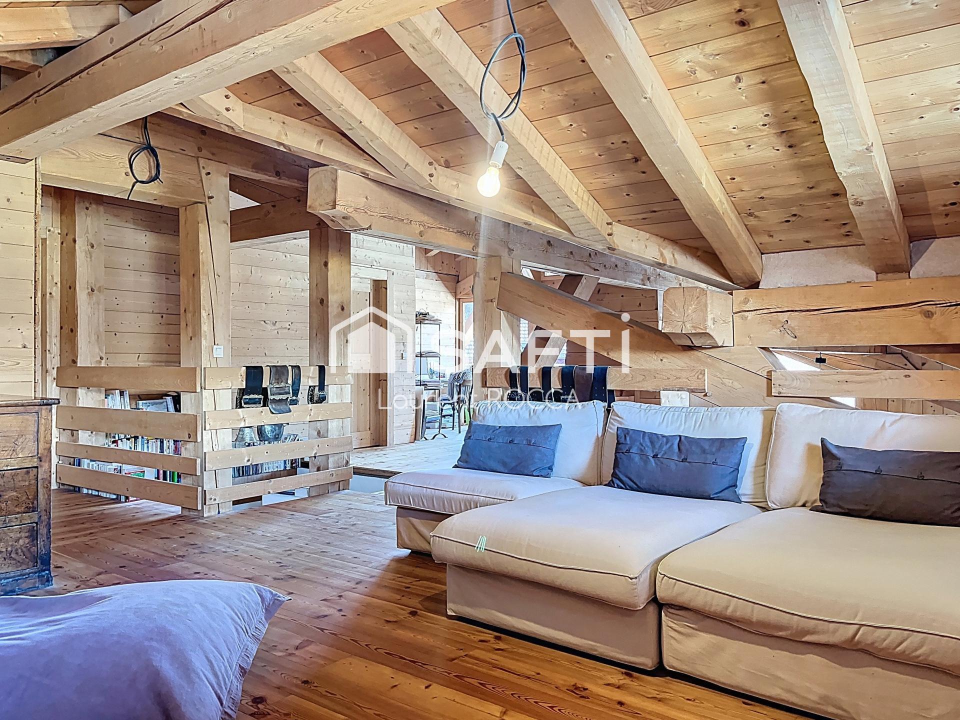 Le mot "chalet" prend tout son sens par rapport à la charpente à l'étage supérieur qui propose 2 chambres, un coin salon, un espace travail. Vous disposez d'un vaste terrain plat piscinable.