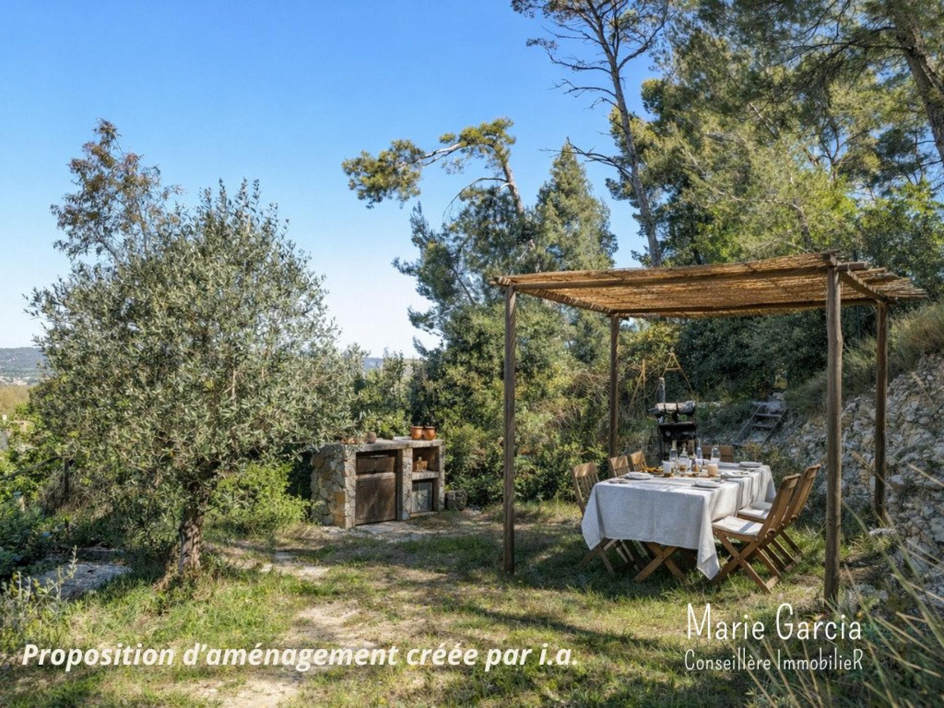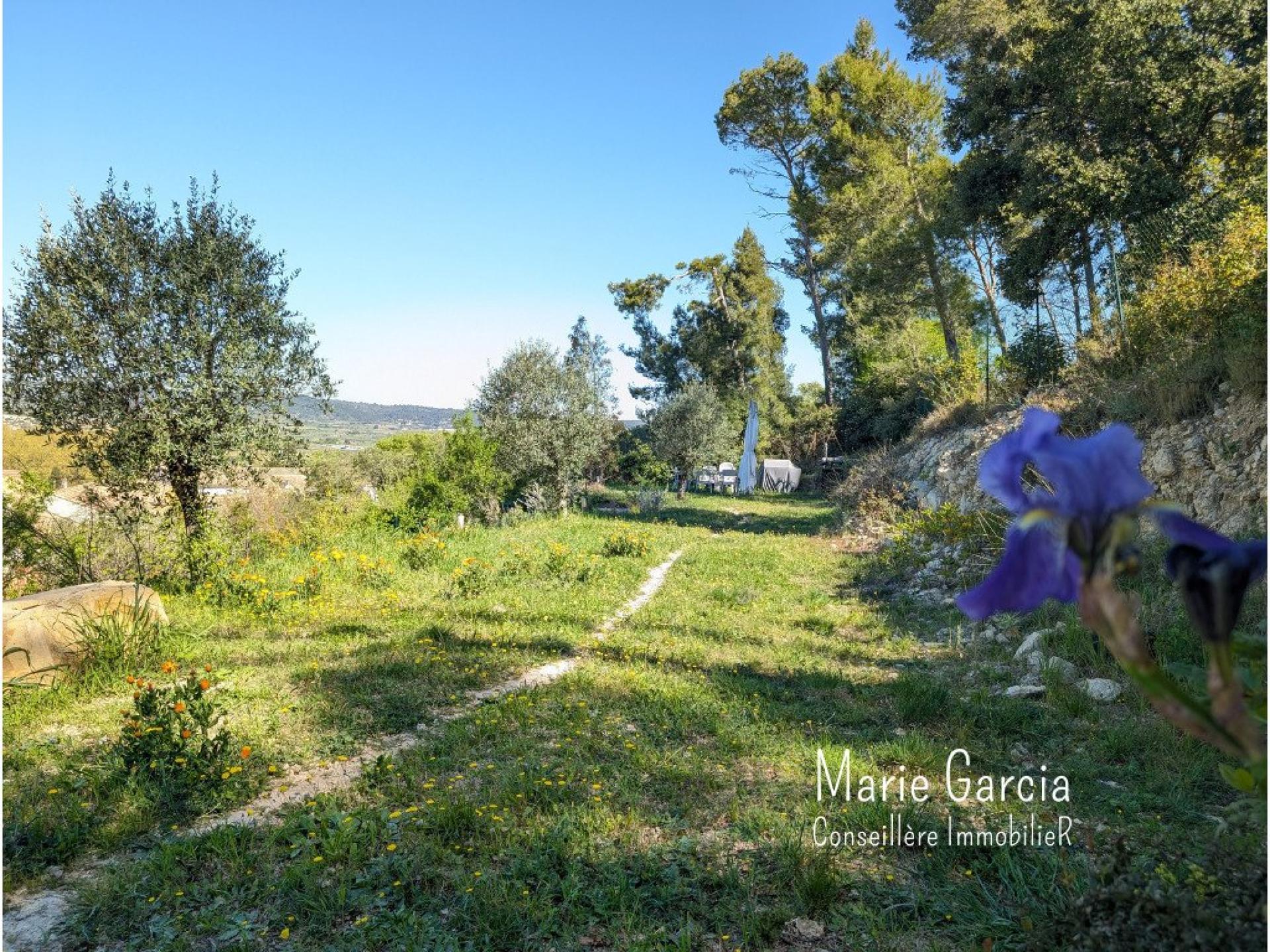 Le jardin, organisé en terrasses, prolonge naturellement la maison. Quelques marches plus haut, il mène à un espace dominant sans vis-à-vis, en zone naturelle, avec une vue ouverte sur la Vaunage. Un lieu rare, propice aussi bien à la contemplation qu’aux moments, les pieds dans l'herbe, autour de la table avec les proches.