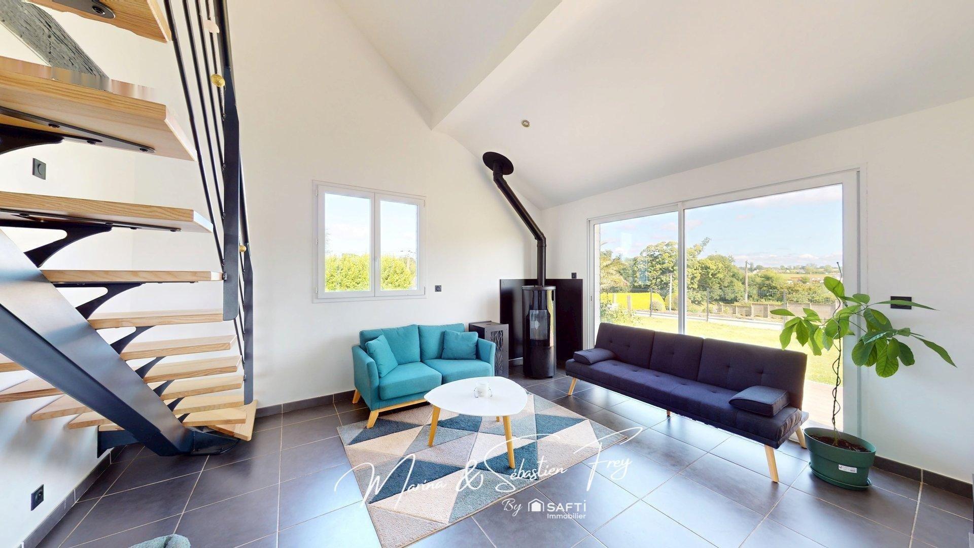 Édifiée sur un terrain arboré de 1 200 m², partiellement clos, elle propose une agréable vie de plain-pied au rez-de-chaussée avec une entrée donnant sur une pièce de vie lumineuse, un séjour/salon chaleureux avec poêle à granulés, et une cuisine ouverte, entièrement aménagée et équipée. Une chambre, une salle d’eau, un WC indépendant ainsi qu’un cellier complètent ce niveau.