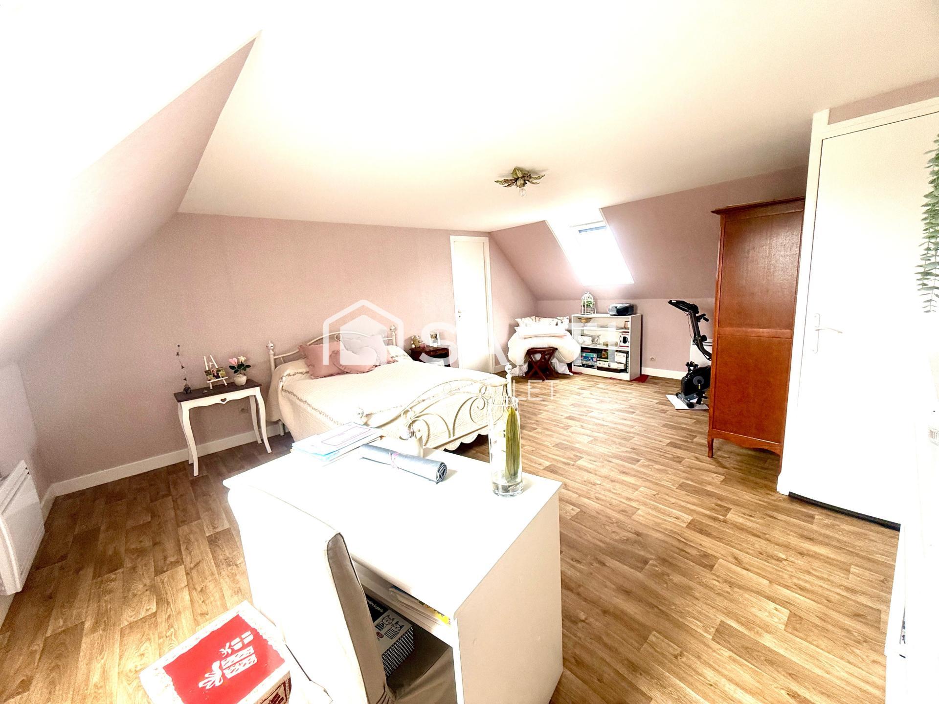 Cette confortable maison de 104 m² sur un terrain de 699 m² offre une vie de plain-pied pratique. Elle se compose d'une entrée menant à une cuisine, une belle pièce de vie, deux chambres, une salle de bain, des WC séparés et des placards. À l'étage, une grande chambre et un grenier aménageable offrent des espaces supplémentaires. Un garage vient compléter cet ensemble offrant de nombreuses possibilités. Construite en 1978, cette propriété spacieuse et fonctionnelle saura séduire les familles en quête de confort et de praticité.