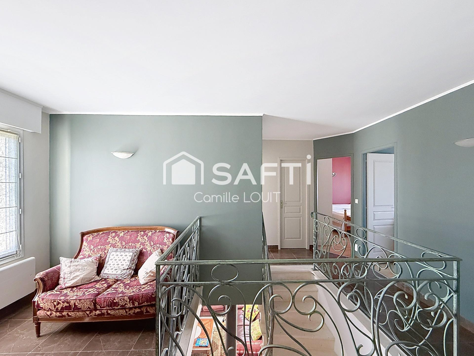 À l’étage, 3 chambres dont une suite parentale, une salle de bain, une salle d’eau et un bureau complètent l’ensemble.