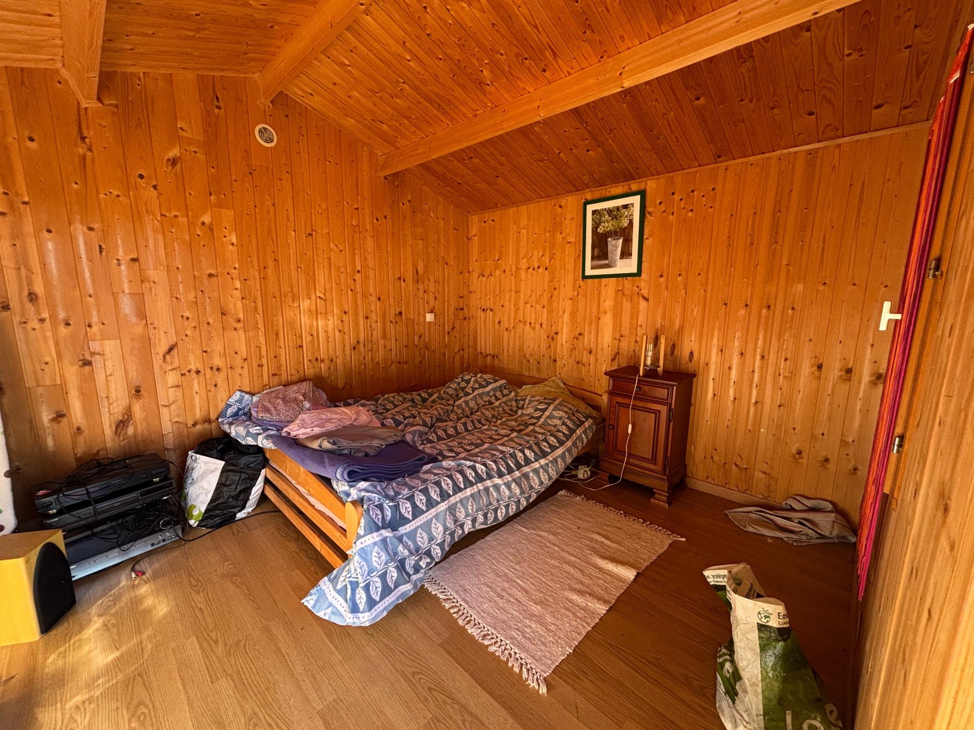 En annexes : un chalet aménagé en chambre d'environ 10m², un second chalet de 15m² transformé en atelier et un abri de jardin.