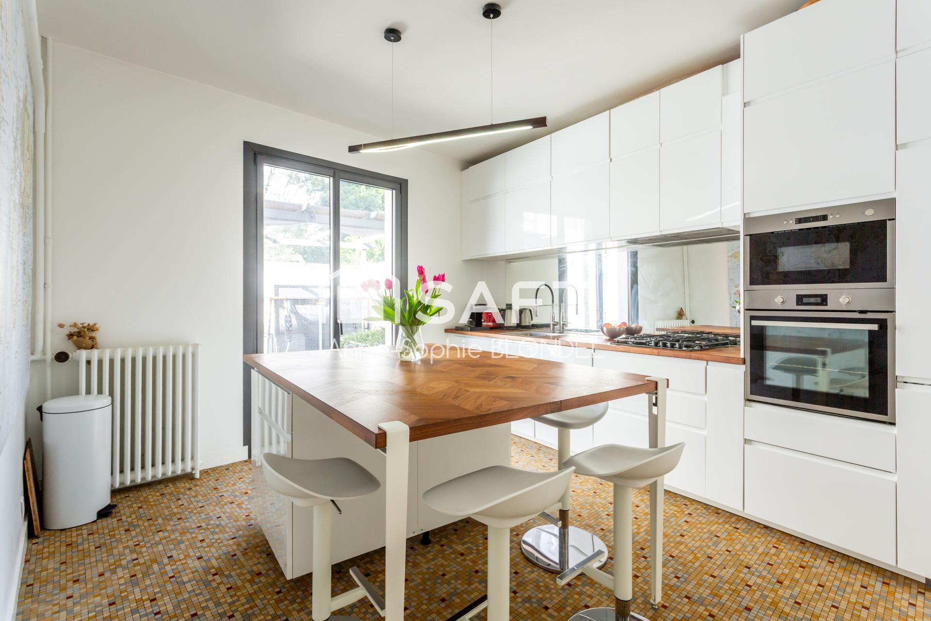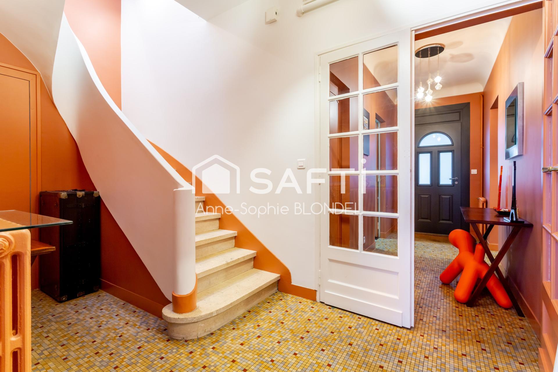 Passez la double entrée, et laissez vous charmer par cette jolie demeure style "art déco" aux prestations conservées. En rez de chaussée, un bureau, une salle de sport, un large séjour donnant sur la partie extérieure, une cuisine indépendante spacieuse entièrement équipée, l 'accès au garage de 18m2, et à la cave .