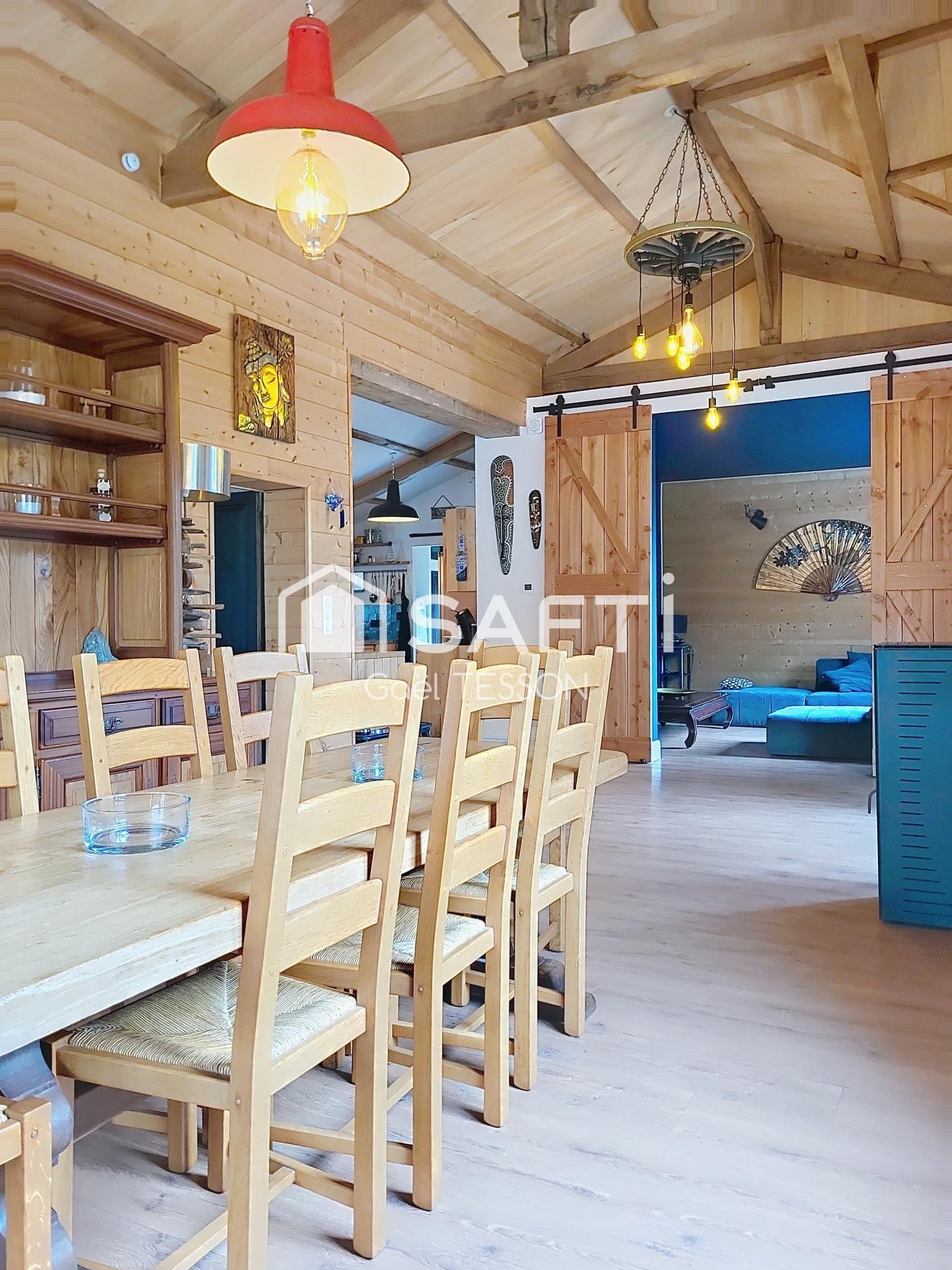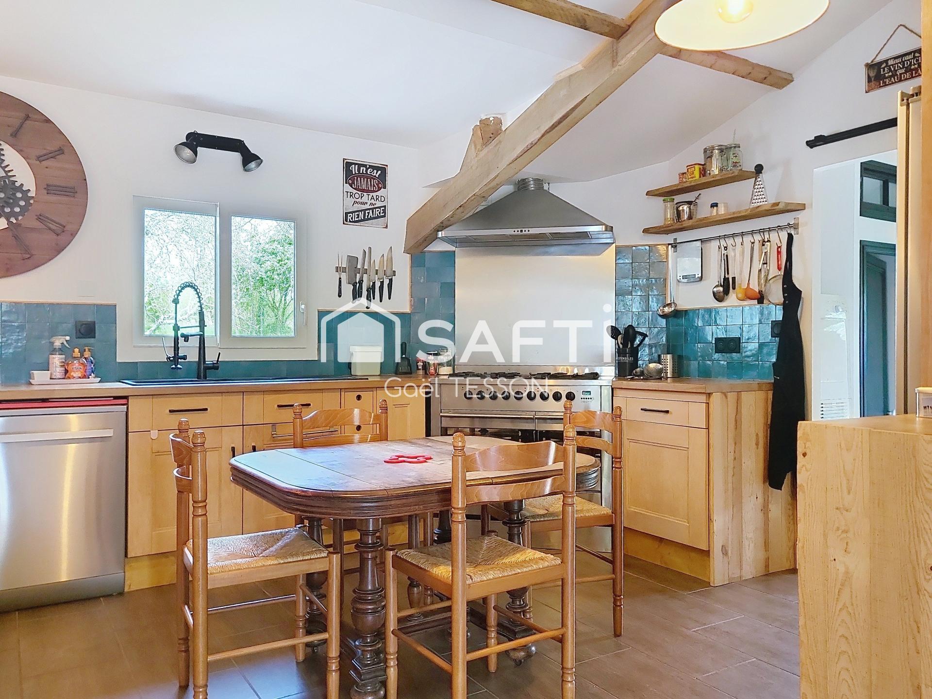 La maison de plain-pied, entièrement rénovée, s'étend sur une surface habitable de 165 m². Elle se compose de 6 pièces, dont 4 chambres, 2 toilettes et 2 salles de bain. Elle possède un chauffage avec poêle à granulés, panneaux solaires. Les menuiseries en double vitrage et les sols en parquet apportent une touche de modernité et de confort à l'intérieur. Disponible dès septembre, cette propriété saura séduire les acquéreurs en quête de confort et de sérénité.