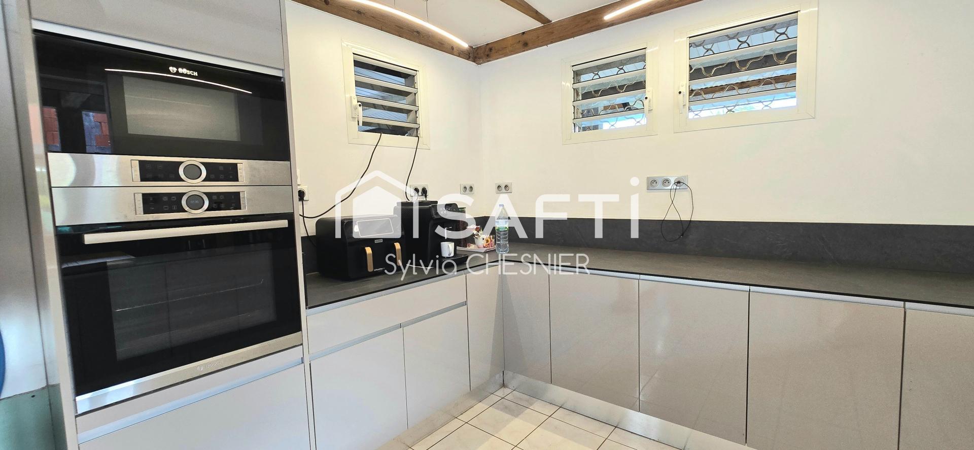 Sylvia Chesnier vous propose au François, cette maison atypique de plain-pied d’une surface actuelle de 120 m², extensible jusqu’à 216 m² à finir de rénover selon envie. Elle est idéalement située dans un quartier paisible et verdoyant, à proximité des commodités, des grands axes et de l’Habitation Clément, offrant un cadre de vie agréable et recherché.