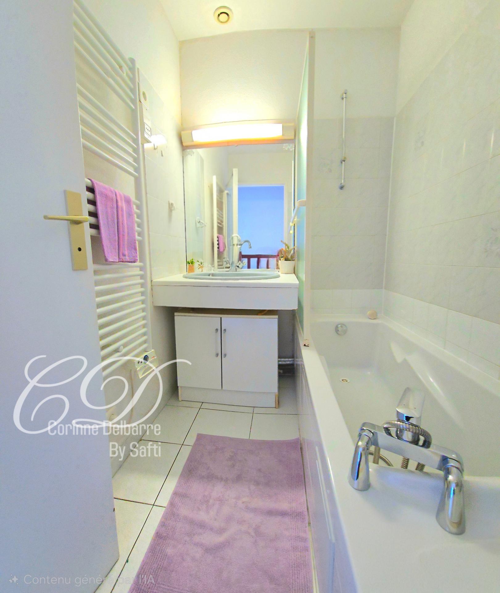 Fonctionnelle et agréable, elle offre une pièce de vie lumineuse avec cuisine équipée, donnant directement vers sur l’extérieur.