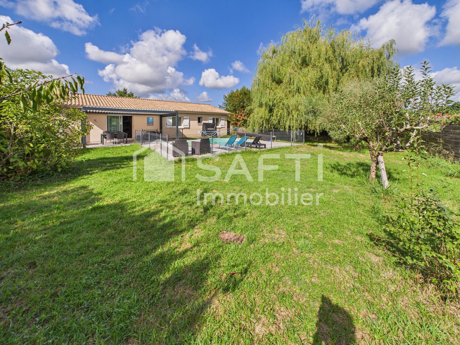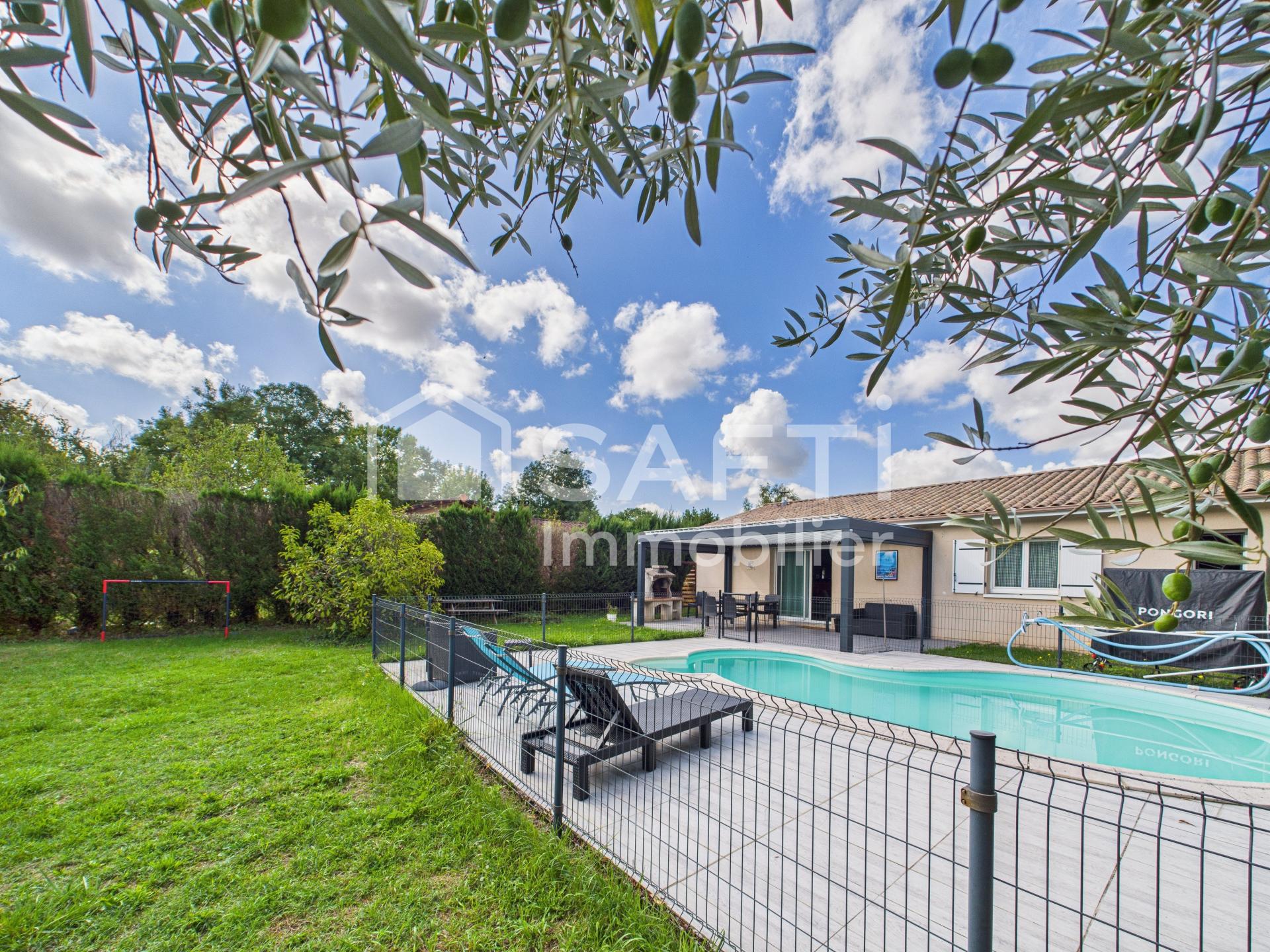 Implantée au fond d'une impasse sur un vaste terrain de 1200m², la maison séduit par son jardin arboré et sa piscine chauffée sécurisée. Un garage attenant, un cabanon de jardin et une belle aire de stationnement complètent le bien.