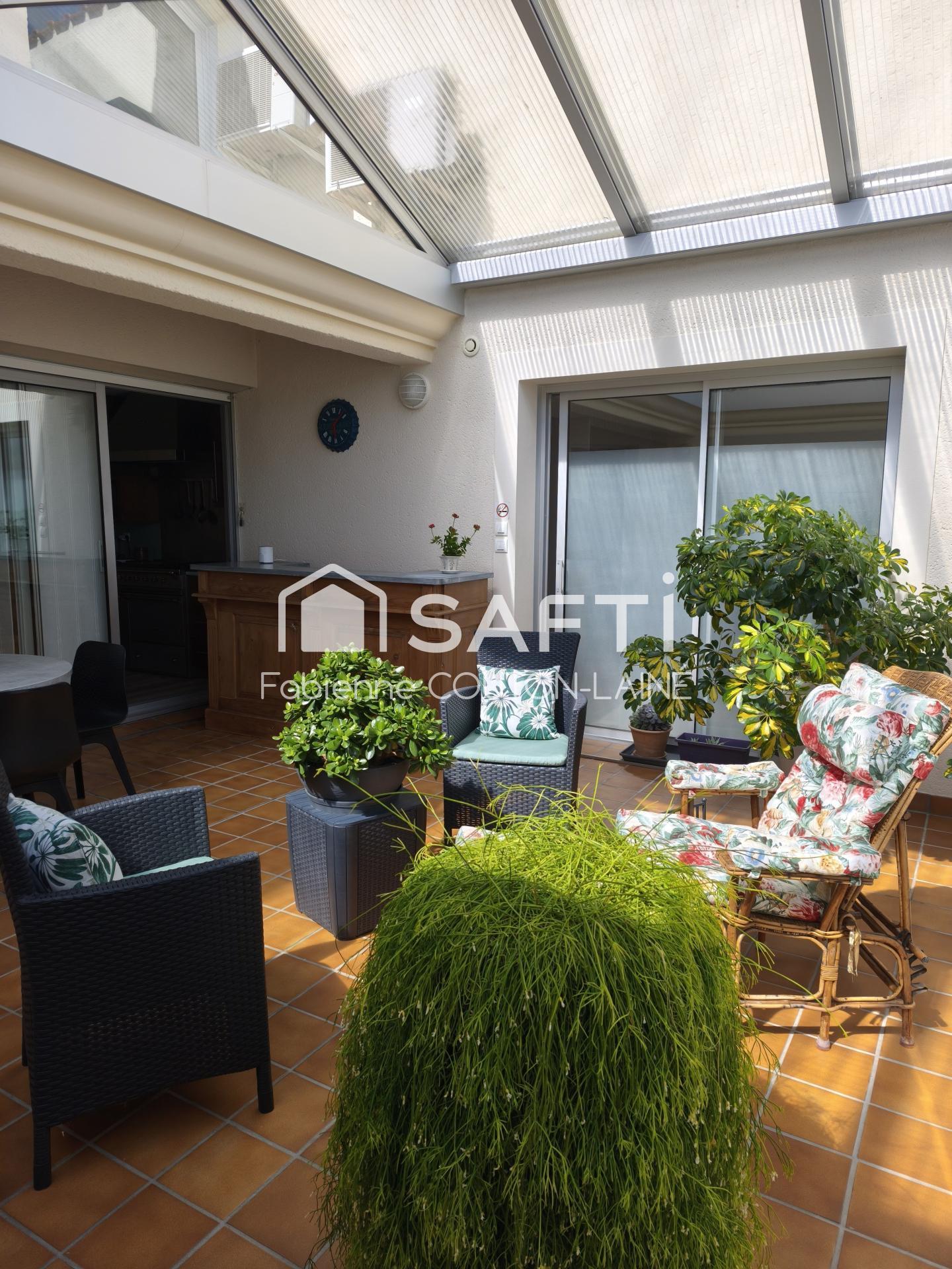 Depuis le jardin clos, on profite d'une terrasse orientée plein sud pour des moments de détente en extérieur.