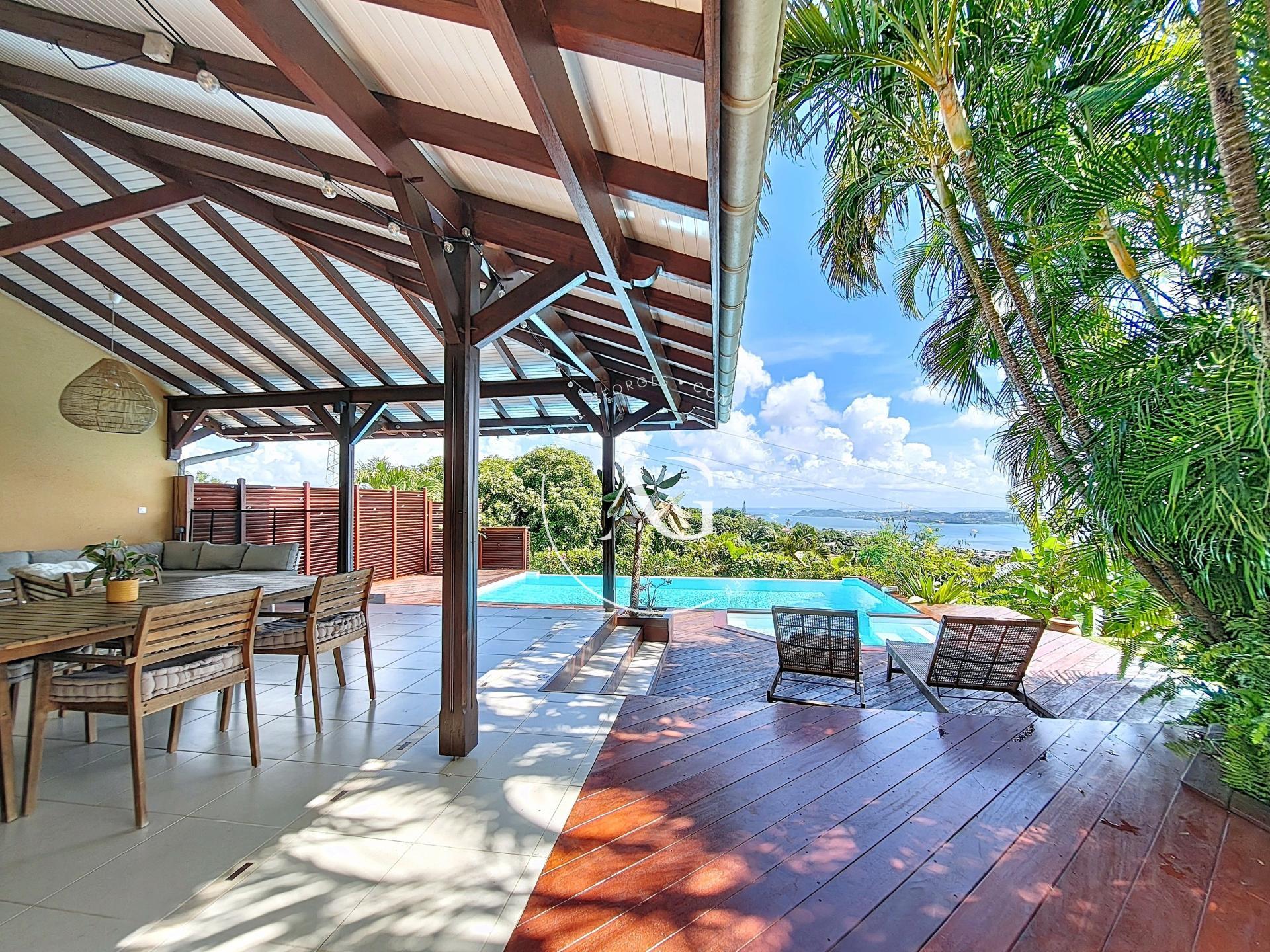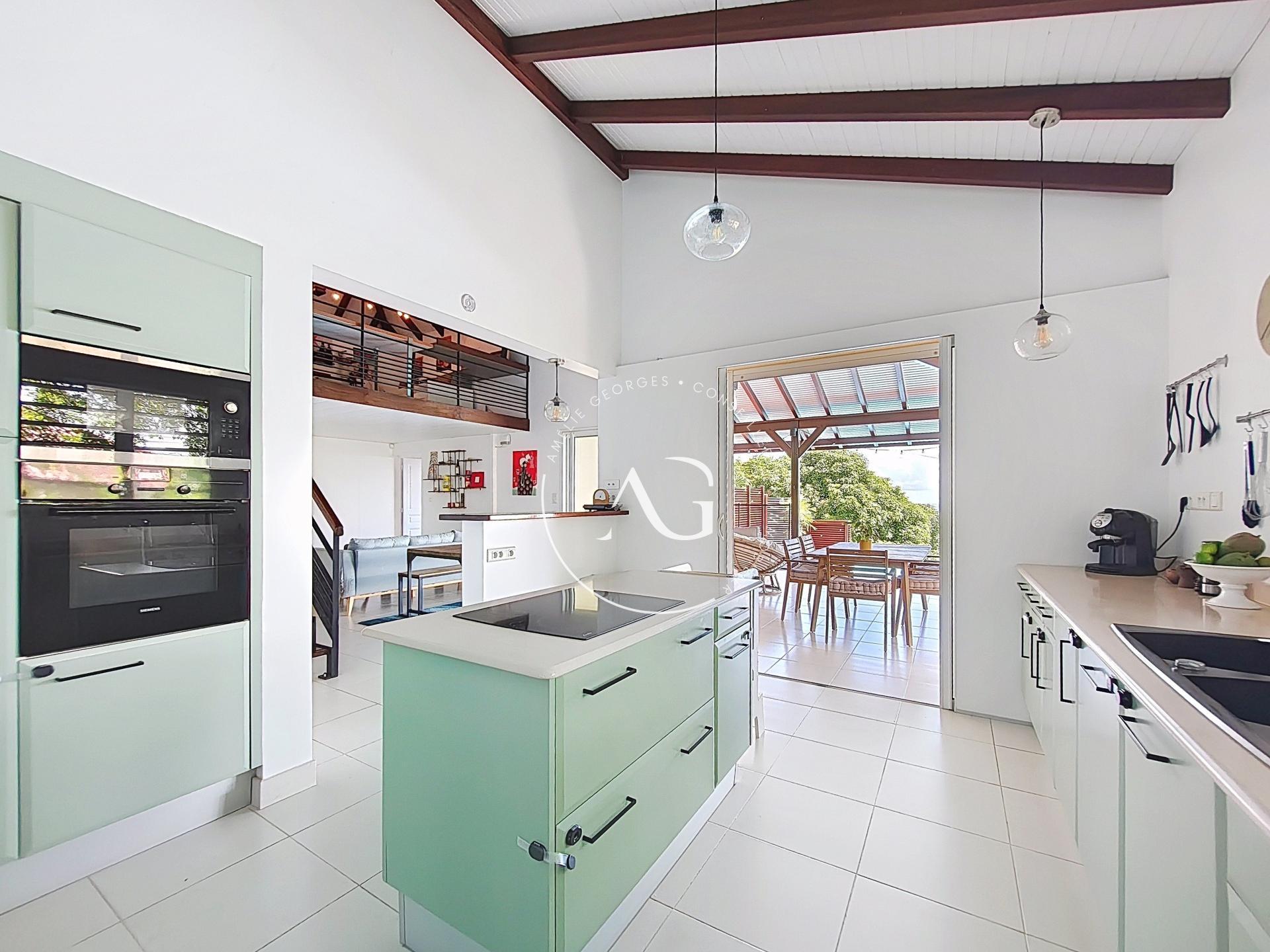 Amélie GEORGES vous propose en exclusivité cette villa de standing avec vue mer panoramique, située dans le quartier résidentiel recherché de Mont Vert sur les hauteurs du Robert, sans vis-à-vis, bien ventilé et non impacté par les sargasses.