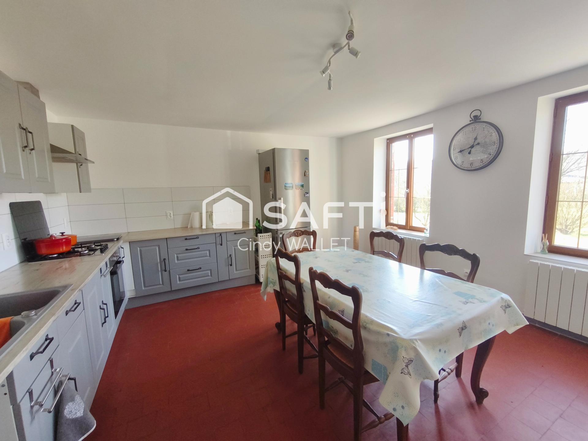 Cette propriété, posée sur un terrain de 1067 m², se compose de 5 pièces dont 3 chambres, offrant ainsi un espace de vie confortable et chaleureux. La maison, empreinte de charme ancien, bénéficie d'une surface habitable bien agencée, idéale pour une famille en quête d'authenticité et de tranquillité. Son jardin arboré ajoute une touche de verdure et de sérénité à cet ensemble immobilier. Une opportunité unique d'acquérir une demeure pleine de caractère, dans un cadre de vie apaisant. vous n’avez qu’à poser vos meubles. Alors n’attendez plus pour visiter ce bien. vous n’avez que vos meubles à poser alors attendez plus pour visiter ce bien.