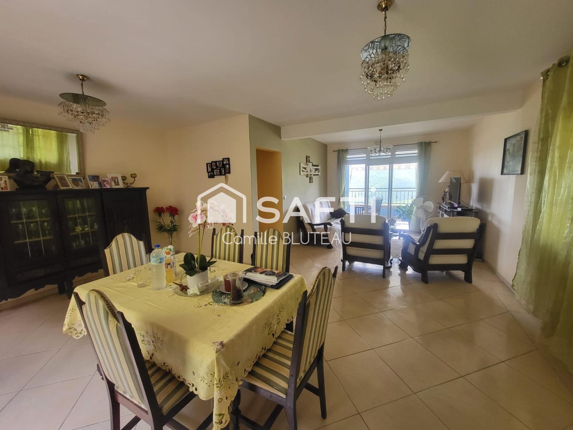 Atouts supplémentaires : 2 places de stationnement sécurisées par portail électrique, environnement calme et végétation tropicale, avec une vue mer époustouflante.