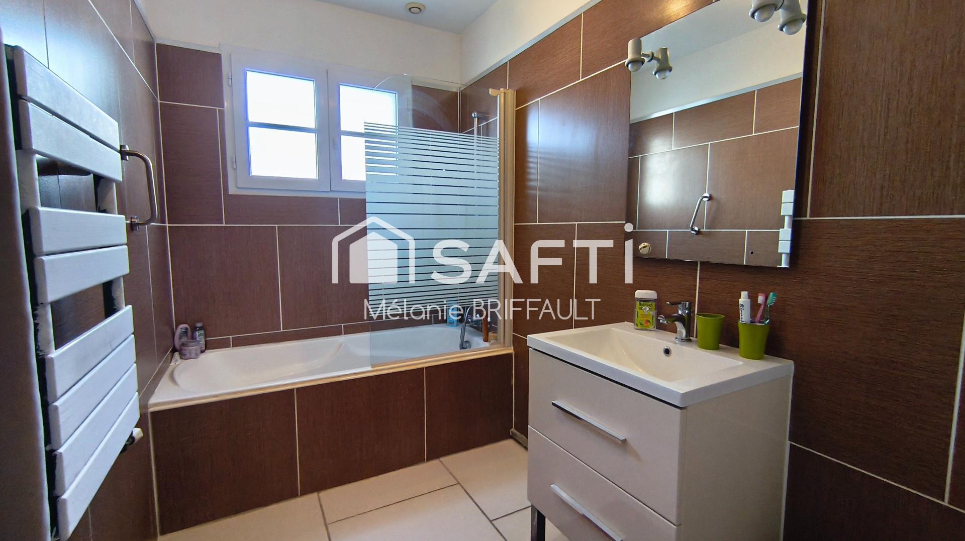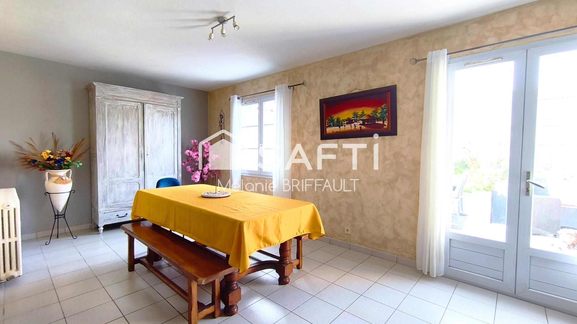 ?Une lumineuse pièce de vie de 60 m² ,s'ouvrant sur une terrasse exposée plein sud, trois chambres confortables, une salle d’eau, un cellier et WC séparé.