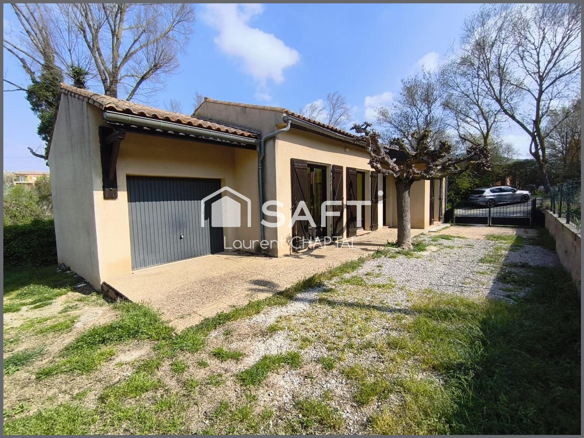 Maison de 76 m2 habitables sur une parcelle de 992 m2 située sur la commune de Leuc, à 8 km de Carcassonne.