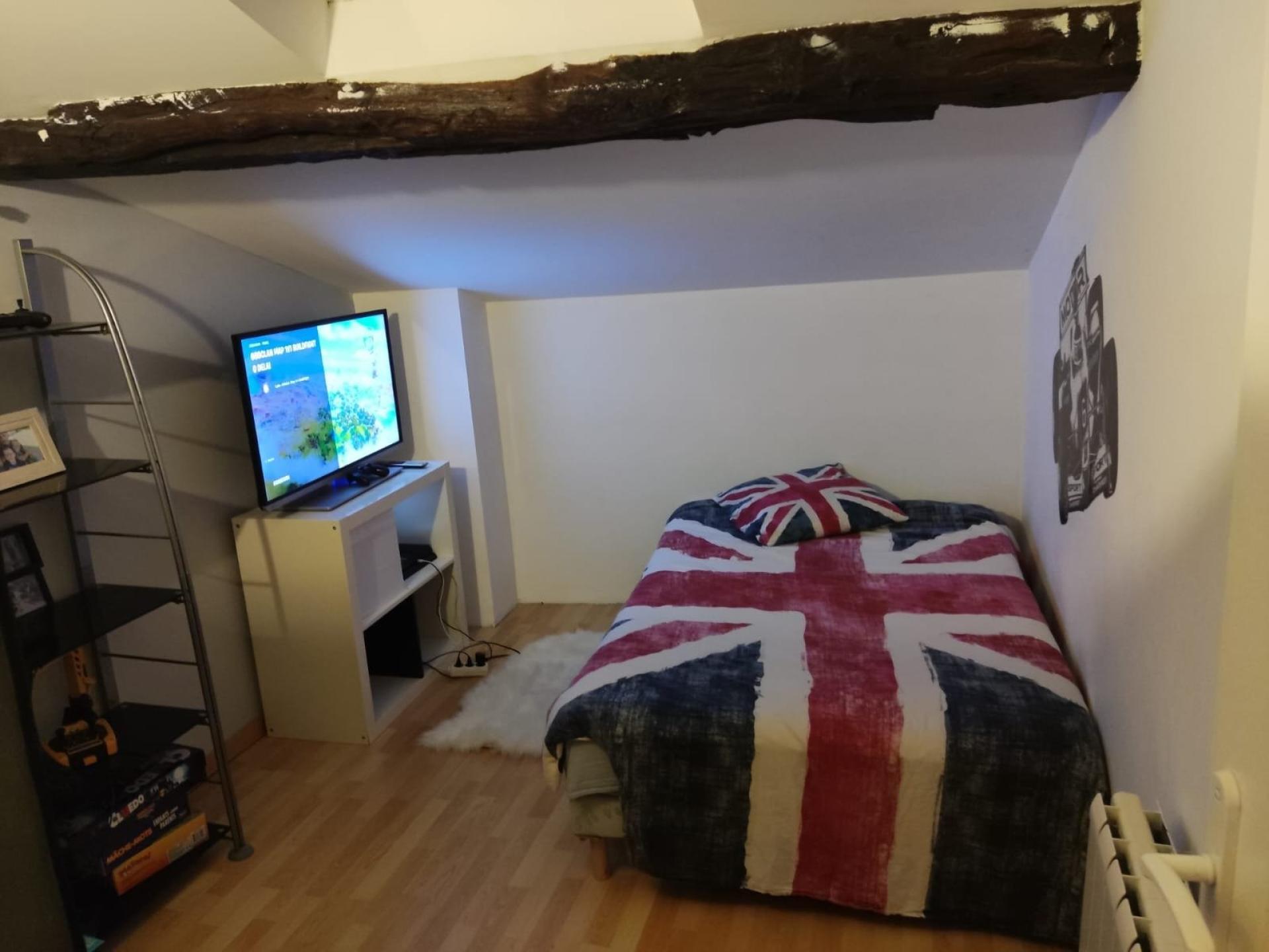 A l'étage, vous trouverez deux jolies chambres mansardées et une salle de bain moderne.