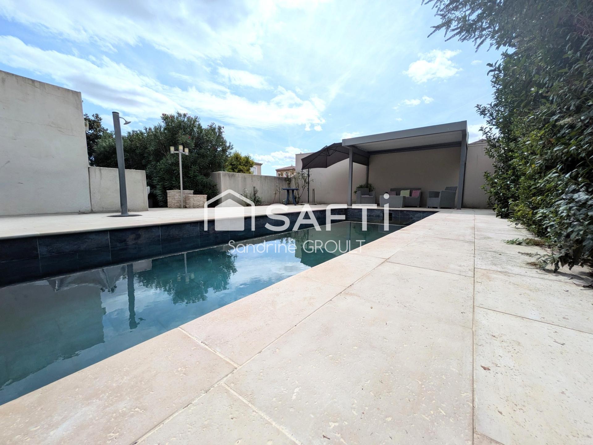AGREABLE VILLA PLAIN PIED 126m², 4 CHAMBES+ BUREAU avec PISCINE et GARAGE