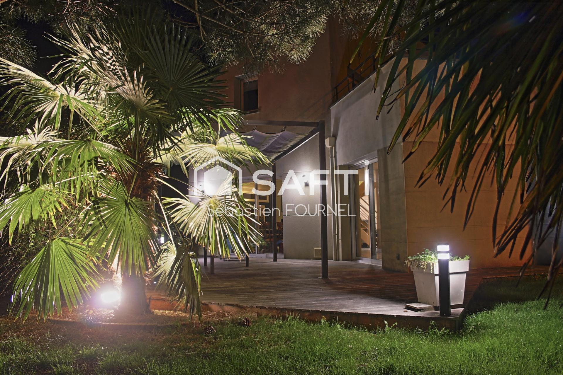 Vous y trouverez au rez de chaussée : entrée avec placard, cuisine aménagée / équipée ouverte sur lumineux et spacieux séjour-salle à manger donnant sur une grande terrasse orientée est-sud-ouest, wc avec lave-mains, suite parentale (sde et dressing), buanderie, grand garage et cave.